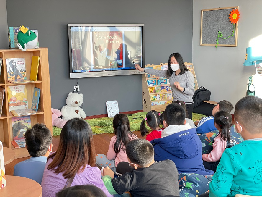 活动现场,基地工作人员张老师分享了《团圆》绘本故事,介绍了贴春联、吃年夜饭、放鞭炮、穿新衣、舞龙舞狮、照全家福等春节民俗,并不时地向孩子们提出有趣的问题,充分调动了大家的热情和积极性,加深了孩子们对春节传统文化的理解。浅显易懂的文字、精美的插图,加上张老师声情并茂的讲解,大家都对绘本留下了深刻的印象。