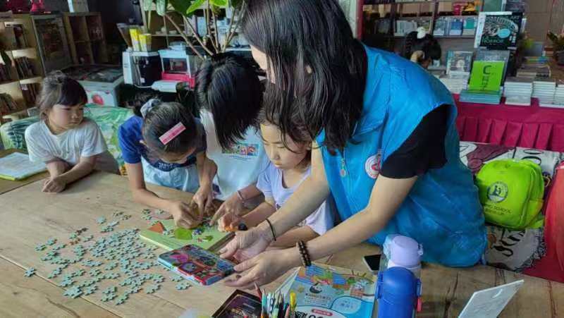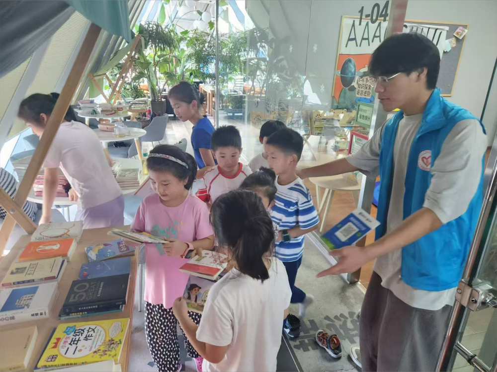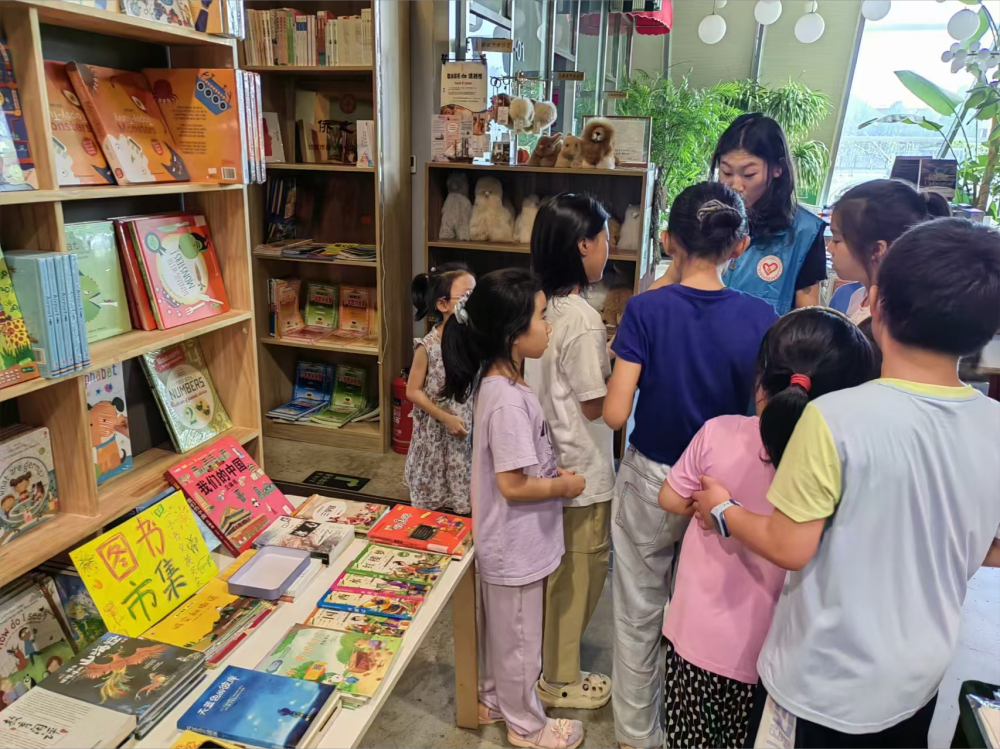 活动中,孩子们在图书市集上整齐摆放着自己带来的各类闲置书籍,方便让其他小朋友们进行挑选。市集上还设有捐赠环节,书主可以将完全闲置的旧书赠送给其他读者,让书籍流转的同时,也传递着一份温暖。