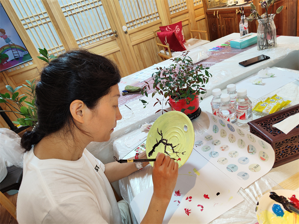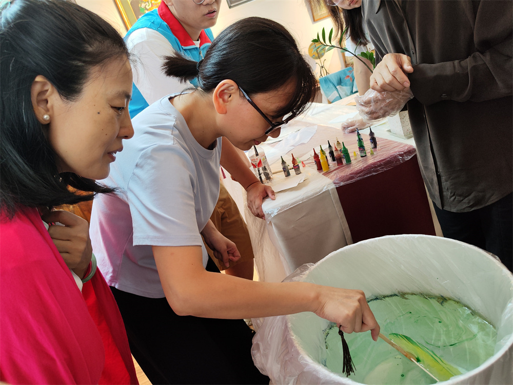 随后,居民们热情高涨地投入到漆扇制作中,在漆彩流动中感受传统工艺的魅力。