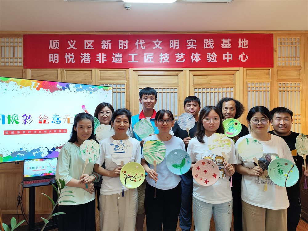 活动最后,居民们展示着自己精心创作的漆扇和锅盖绘画作品,脸上都洋溢着满足的喜悦,并在多彩的艺术氛围中一起合影留念。 下一步,明悦港非遗工匠技艺体验中心新时代文明实践基地将继续开展丰富多彩的非遗文化体验活动,激发更多市民对传统文化的热爱,让古老的技艺在现代社会中绽放出更加绚烂的光彩。
