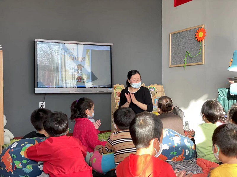 活动开始,基地张老师向大家介绍了腊八节的习俗等内容。随后,开始了绘本故事《香香甜甜腊八粥》阅读,绘本讲述了主人公一家准备腊八粥食材、熬粥、送粥、喝粥、给出门在外的亲人留粥、把腊八粥涂在树上等一系列问答故事,在不同的温馨快乐的场景中,表达了对美好生活的向往,传递出了腊八节这个传统节日的文化内涵。过程中,小朋友们积极举手发言,脑洞大开,场面非常热闹。通过阅读绘本、分享腊八节的故事,让孩子们体会传统节日带来的内心期待和喜悦,拥有新的思考和成长。