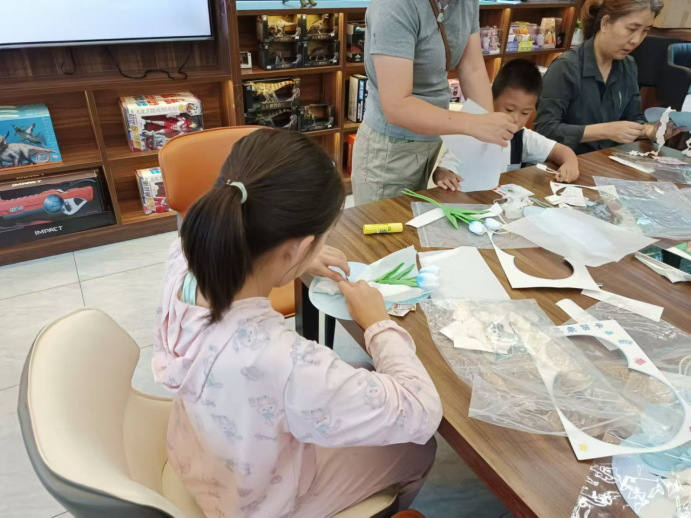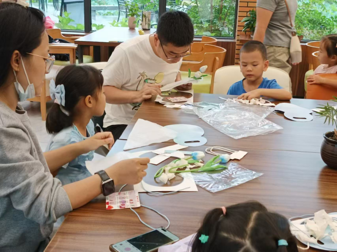随后,京京老师给大家分发了教师节花束的制作材料,孩子们兴致勃勃地和家长一起开始动手制作。大家一边裁剪花枝、一边包装花束,很快地,一束束清新雅致的教师节花束就制作好了。孩子们会将这些花束作为教师节礼物送给自己的老师,以表达对老师们的感谢和尊敬。
