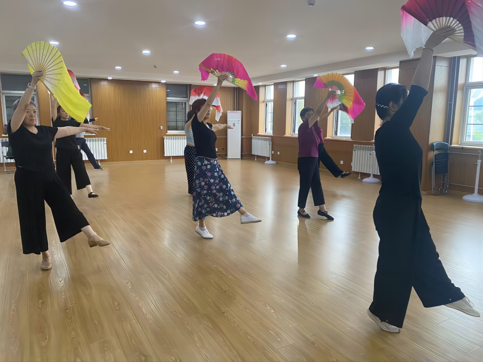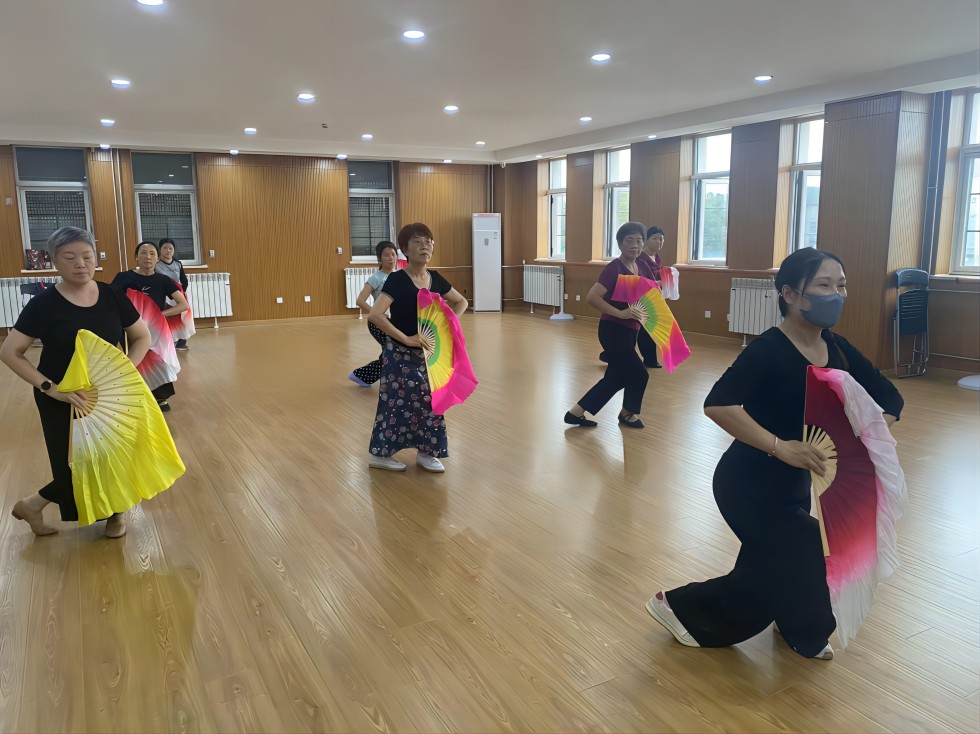 活动中,舞蹈老师从最基础的扇子握持方式开始耐心细致地指导大家学习扇子舞,确保每个人都掌握正确而优雅的握扇技巧。随后,一系列扇子舞的基础动作如行云流水般展开,开扇时,扇子如蝴蝶展翅,轻盈而灵动;合扇瞬间,则似微风拂面,温婉而含蓄;还有令人赞叹的转扇与扇花动作,让人赏心悦目。居民们在老师的带领下,不断练习,力求每一个动作都准确到位,最终展现出扇子舞的独特魅力。