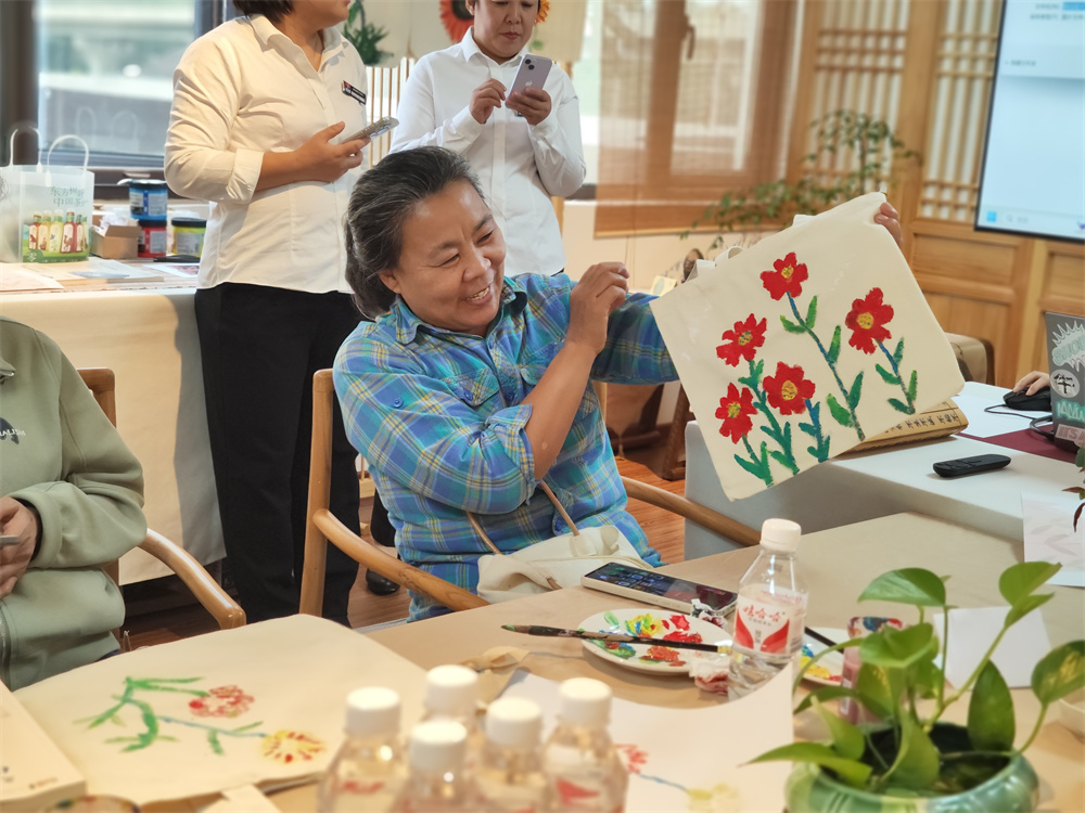 随后是布袋绘画环节,在色彩的世界里,丙烯颜料将创意具象化。大家拿起画笔,在布袋上挥洒无限想象。有人画出娇艳花朵,将大自然的美丽浓缩于一方布袋之上;有人则描绘出卡通形象,造型可爱、色彩明亮,每一笔都承载着创作者的情感与创意。