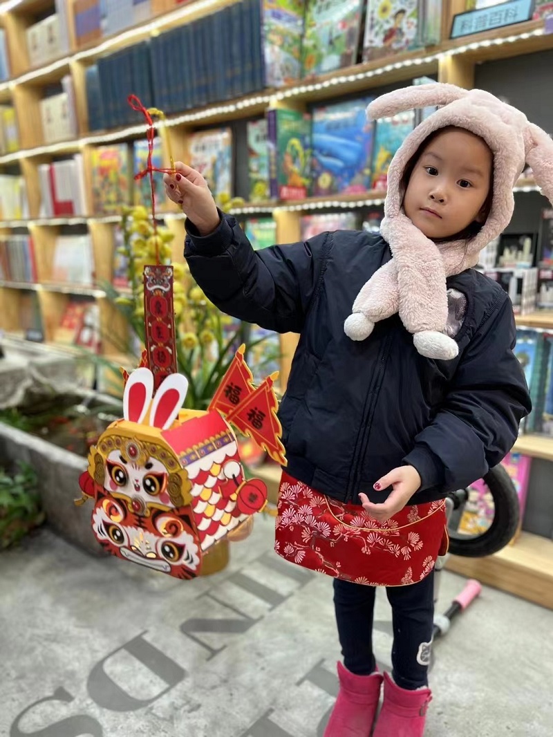 绘本故事结束后,小朋友们来到大厅一起猜灯谜,赢奖品,并领取制作手工灯笼的材料,与家长一起动手制作灯笼,感受浓浓的节日氛围。