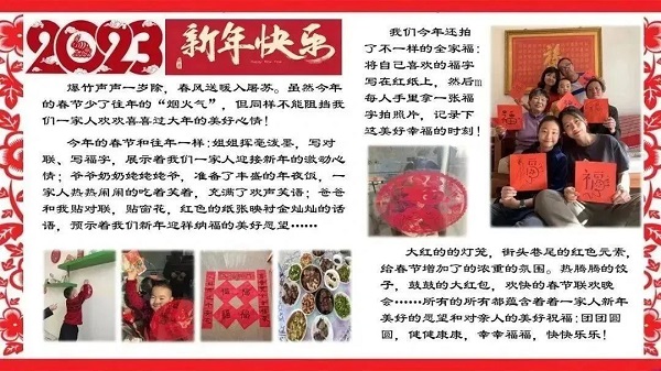 为丰富青少年的精神文化生活,引导青少年体验、感受中国传统节日文化,2023年春节期间,顺义区阳光地带社区青年汇新时代文明实践基地面向全区6-18岁青少年开展“寻找兔年新春里的浓情年味儿”作品征集活动。