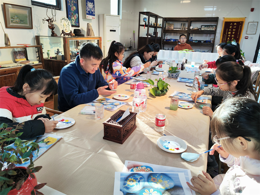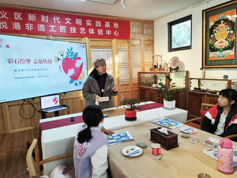 明悦港非遗工匠技艺体验中心新时代文明实践基地开展“彩石绘梦 志愿传情”公益活动