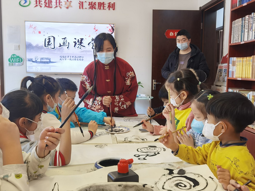 北青国学书香驿站建新站新时代文明实践基地开展“童心展丹青,文化助创城”国画课堂活动