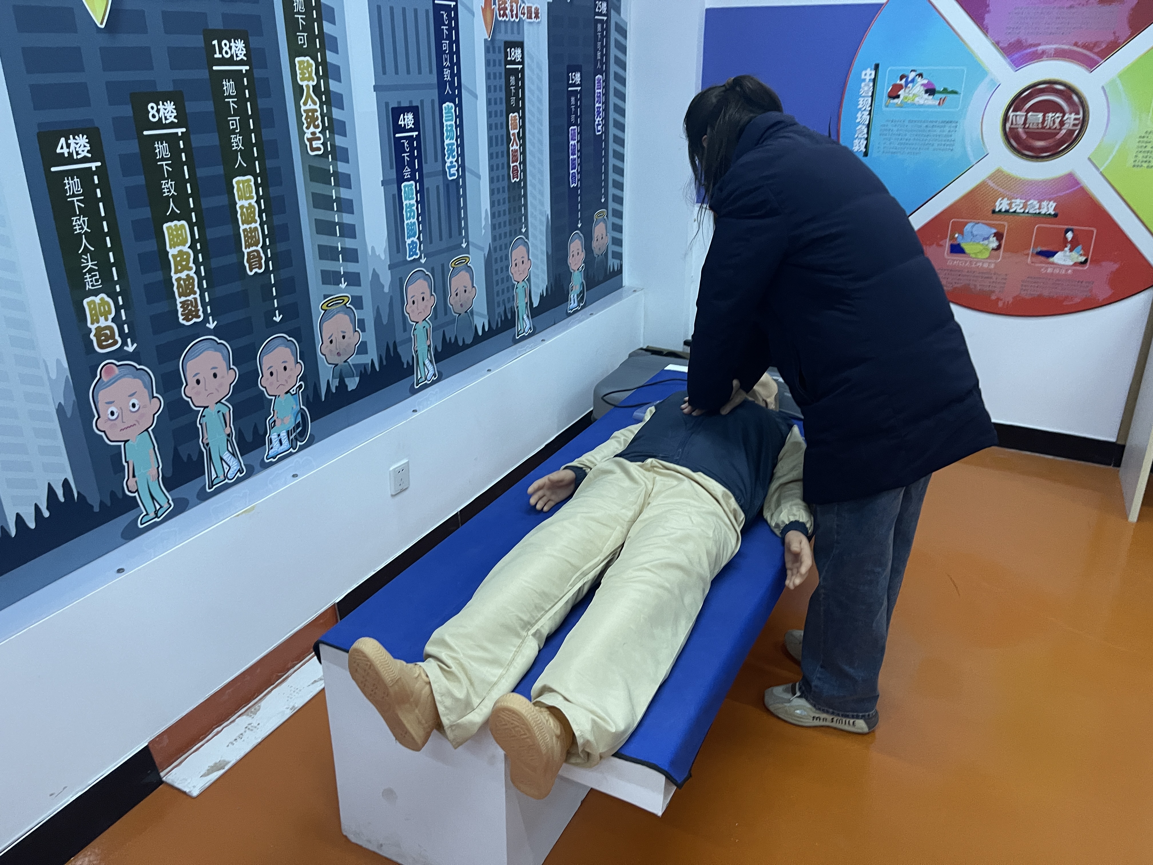 活动中,居民们在防火防灾区域了解火灾形成要素以及预防要点,并在模拟火灾场景中,实践逃生技巧,操作消防器材,熟悉灭火流程。在急救秘籍环节,专业人员为大家示范心肺复苏、包扎止血等常用急救方法,并指导居民们在模拟情境中进行实操练习,掌握急救方法要领。