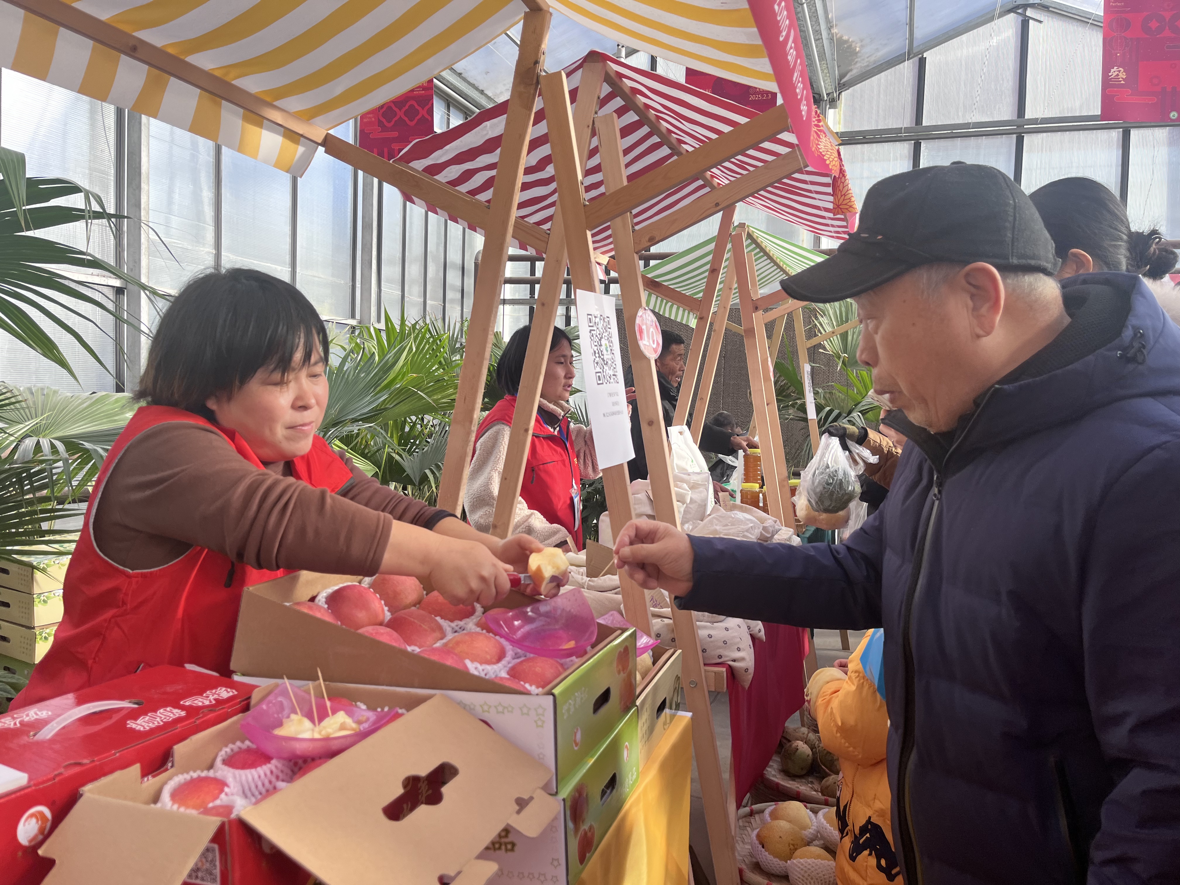 12月28日,顺义区园林绿化服务中心在顺义公园举办了“‘蛇’么都好”公园集市活动,巧嫂现代农业科普基地受邀参加活动,带领基地工作人员为市民送去种类繁多的瓜果美食、山货蔬菜等农特产品,广受市民欢迎。