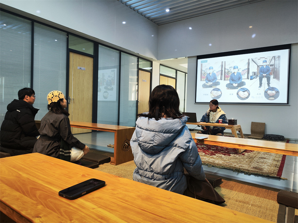 为让市民体验传统养生,从中汲取古人的养生智慧,缓解现代生活的压力与疲惫,12月27日上午,明悦港非遗工匠技艺体验中心新时代文明实践基地开展了“舒压养生 悦享健康”活动,共10余位市民参加。