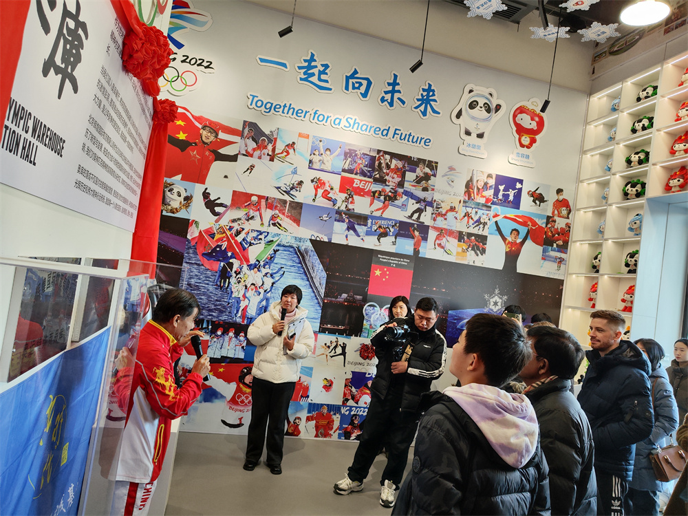 活动中,大家先来到明悦港基地利用自有空间精心打造的奥库体育收藏馆。踏入馆内,两层展厅里,琳琅满目的北京冬、夏双奥纪念品与收藏品令人目不暇接。外国友人漫步其间,仿佛穿越时空,亲身感受到了奥林匹克精神的激昂与体育文化的厚重。
