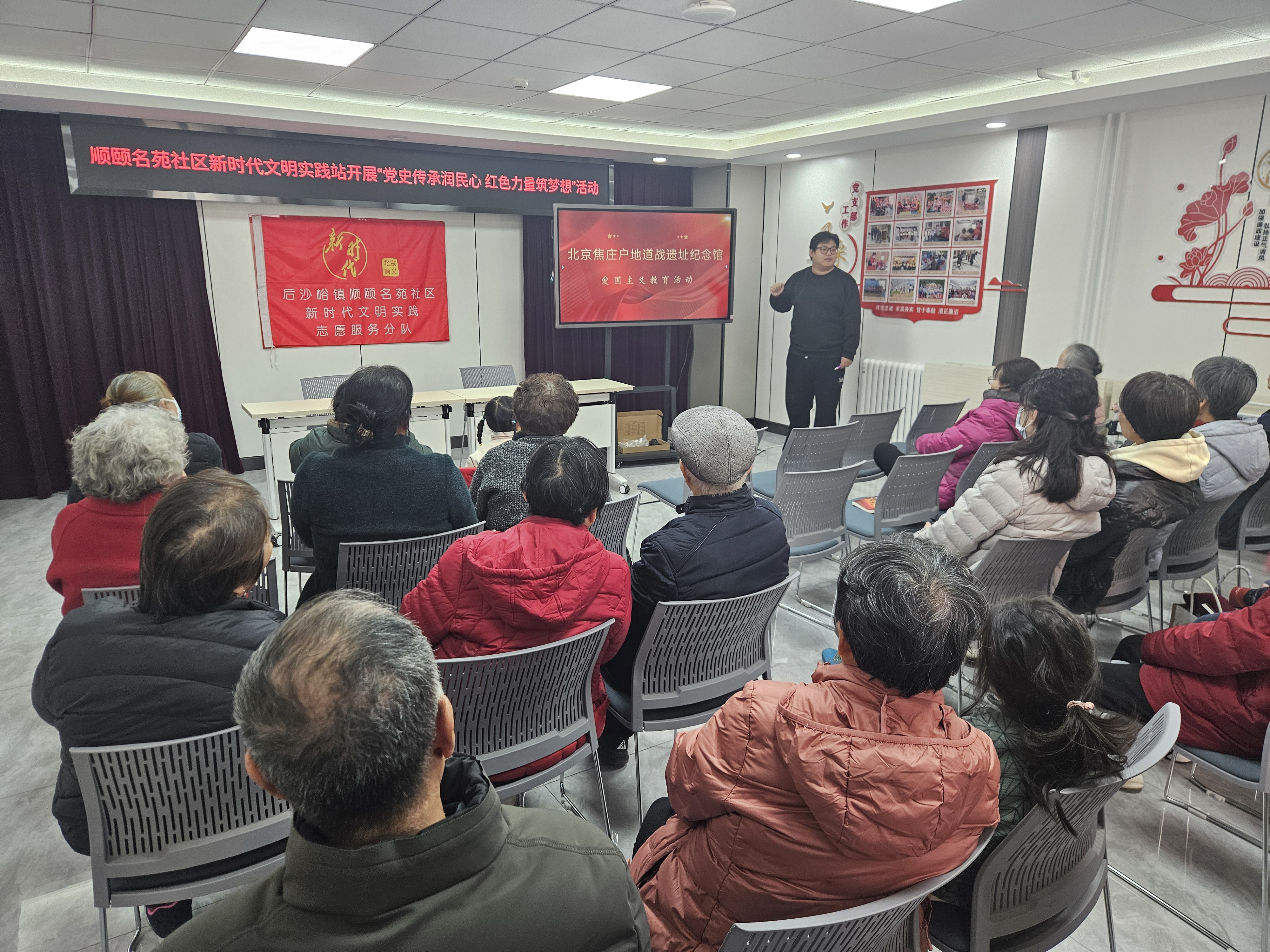 为进一步凝聚顺义群众的爱国力量,2月14日,北京焦庄户地道战遗址纪念馆新时代文明实践基地在后沙峪镇顺颐名苑社区开展了党员志愿巡展活动。