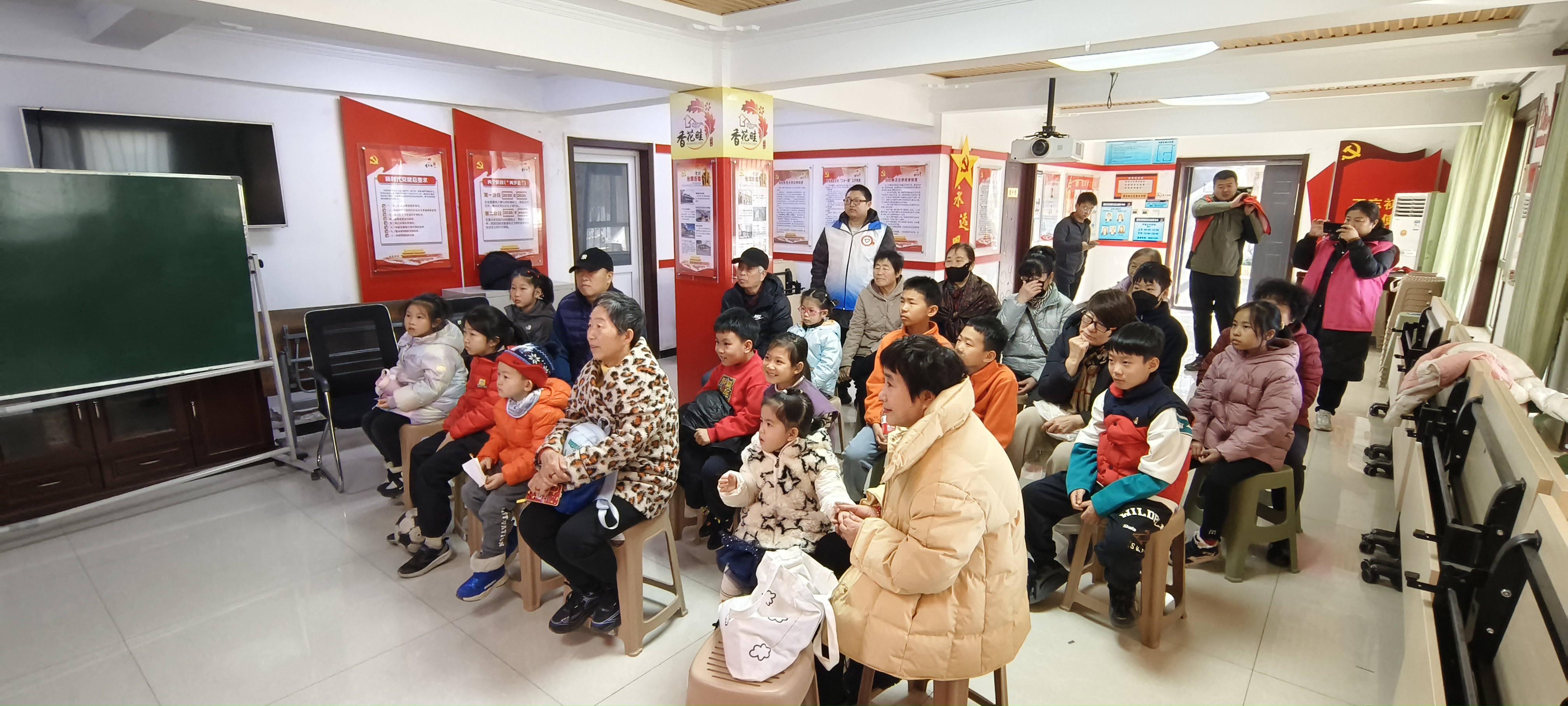 活动中,社区居民一起观看电影《地道战》,电影讲述了1942年日军侵华的战火烧到冀中平原,为对抗日军当地人民发挥自身的聪明才智及艰苦奋斗的革命精神,开凿出一条条错综复杂的地道,最后成功击败日本侵略者的故事。