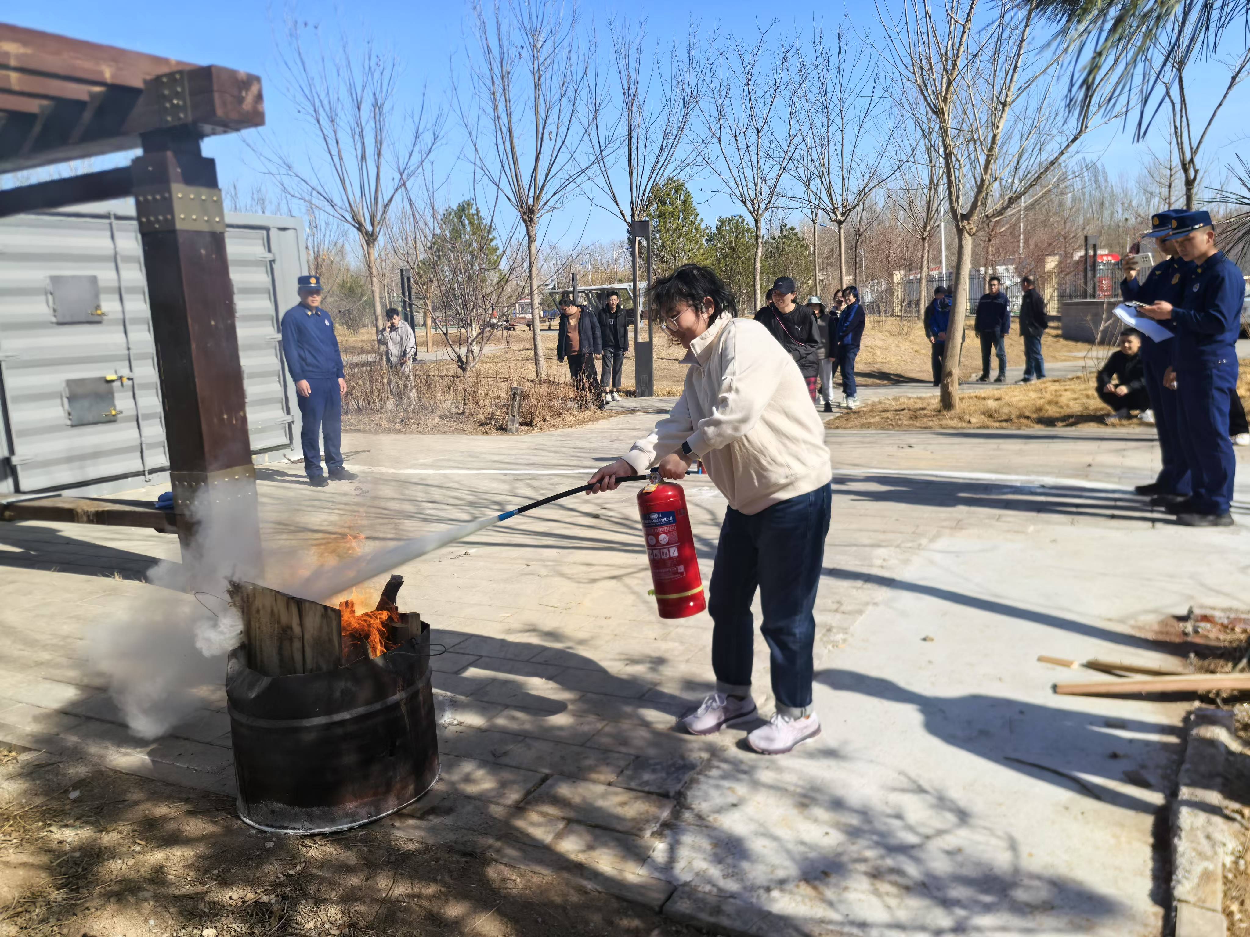 活动中,消防指战员系统讲解了火灾防范要点、扑救初期火情方法、自防自救技能及常见火灾场景处置流程。随后,参训人员在指战员指导下,严格按照“见真火、出真水、做真动作”标准,逐一对灭火器“提、拔、握、压”四步操作法和消火栓“一铺二接三开四射”要领进行反复演练,切实掌握消防基础技能。