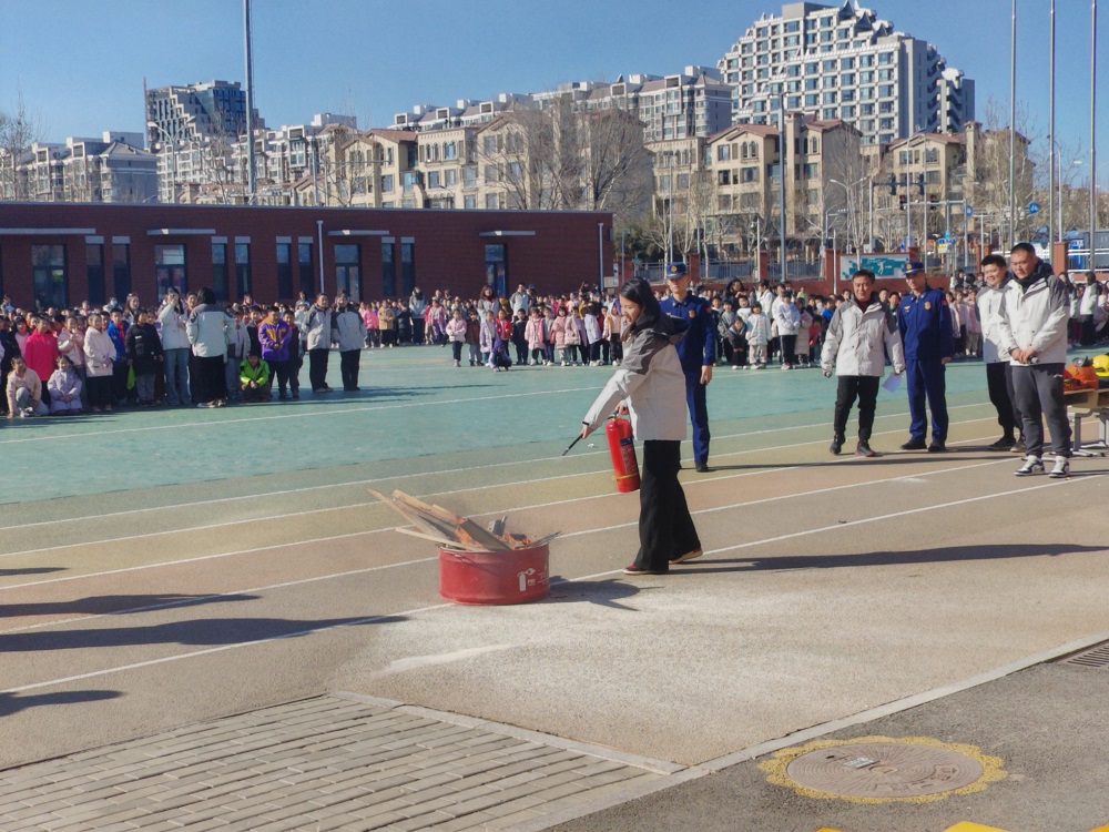 活动中,消防员组织全校师生开展应急疏散演练,全校师生有序地从教室疏散到操场。随后,消防员结合火灾案例为师生们阐述校园消防安全的重要性,详细讲解校园中的常见火灾隐患、报火警的正确方式、灭火器的正确使用方法以及火场逃生自救方法等消防安全常识,并在“灭真火、出真水”的模拟演练中,提升全校师生的火灾应急救援技能。
