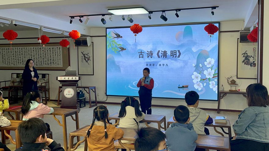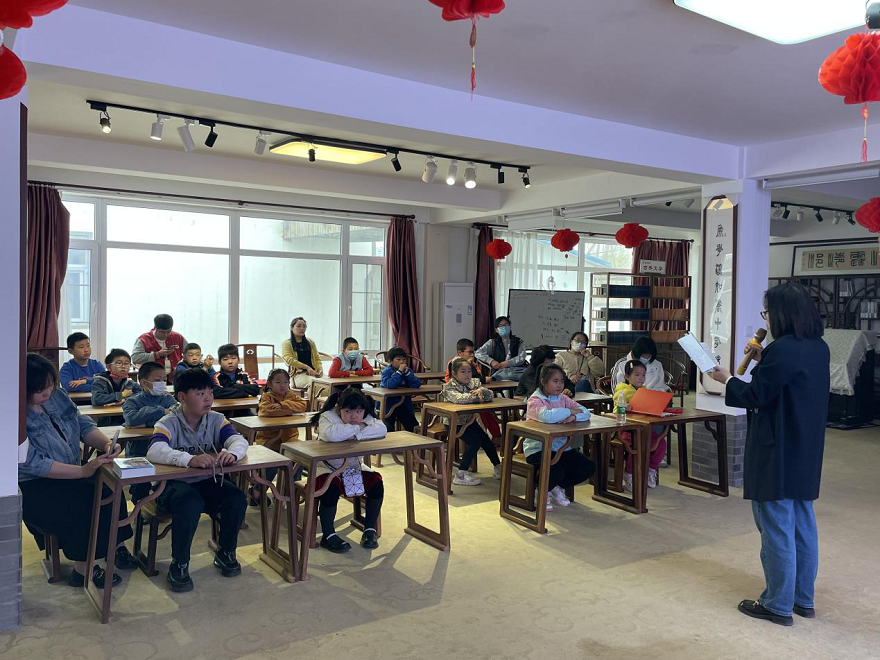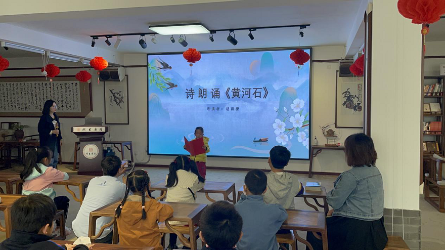 工作人员和小朋友们一起重温抗日英雄刘胡兰的光荣事迹,让英雄精神薪火相传。现场还有两个小朋友分别表演了诗朗诵《清明》和《黄河石》。
