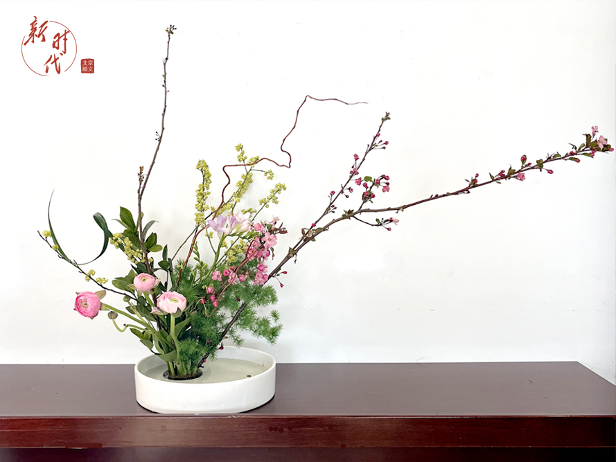 活动中,宋曦老师结合PPT讲解了Sogetsu,即“草月流花道”的艺术风格和特点。草月流继承了东方花道的唯美、含蓄,又突破了传统的约束,吸取西方艺术特点,注重空间的构成,不拘于只使用花材设计,应用任何素材于作品创作中,完全颠覆大众对传统花道的概念。宋老师在台上边讲解边做演示,大家根据自己对美的理解自选花材制作专属自己的独一无二的插花作品。