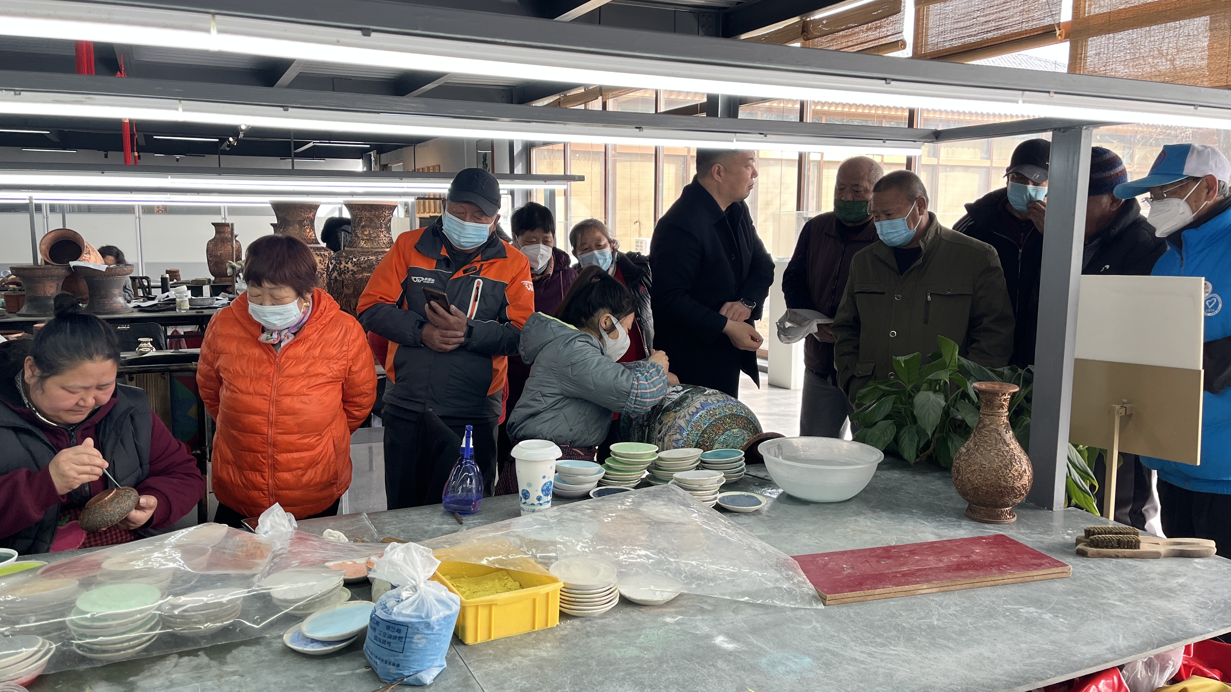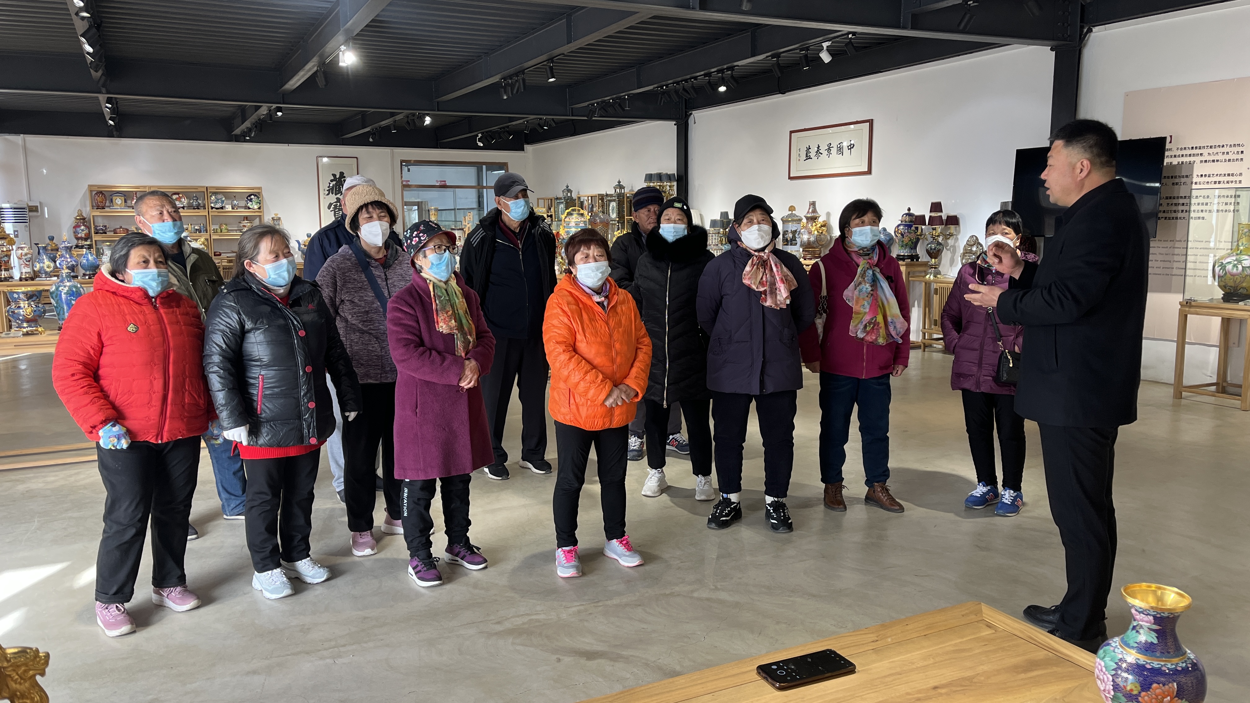 在讲解员的带领和讲解下,村民们走进良山景泰蓝艺术馆,了解了景泰蓝这项非物质文化遗产的历史渊源与发展史,以及传统景泰蓝作品的不同风格,欣赏了精美的景泰蓝艺术作品。
