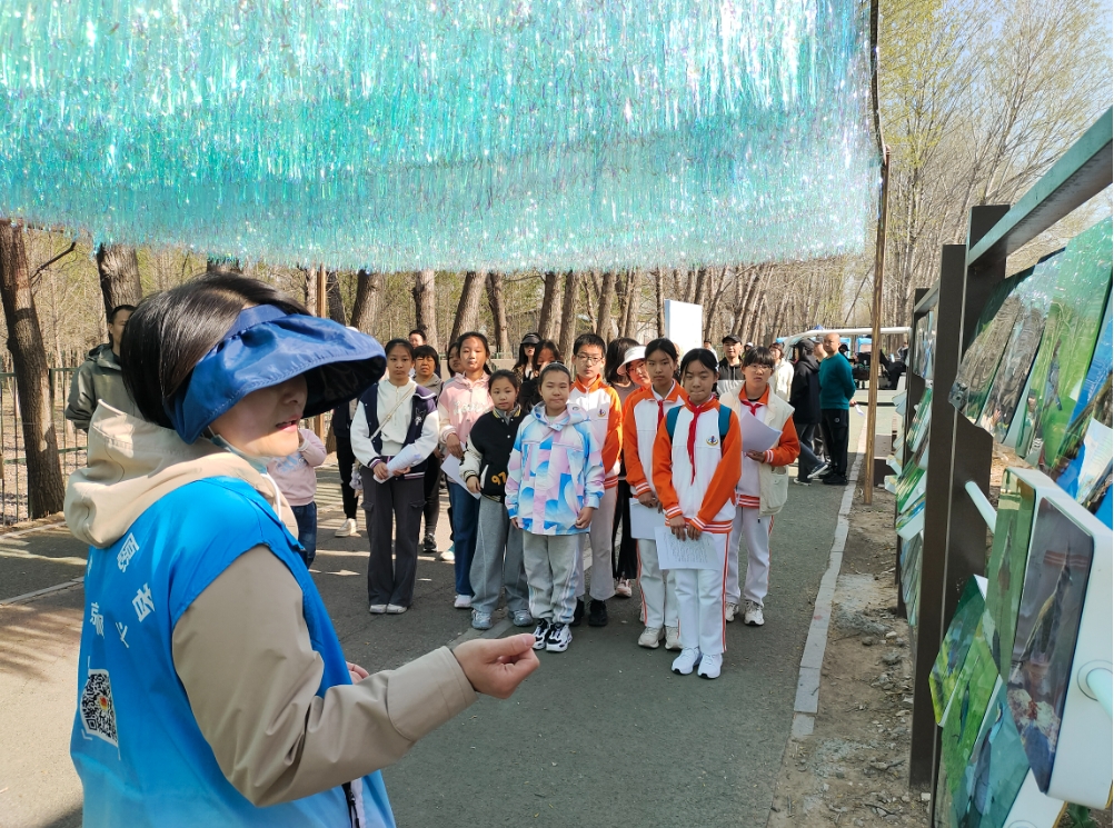 活动中,基地工作人员向大家介绍汉石桥湿地公园的地理风貌,大家在湿地采风后进行创作并探讨,在初春景象中深入体验湿地文化。