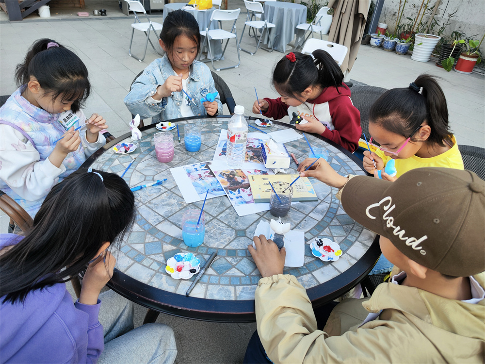紧接着,在石膏绘画体验环节,孩子们在老师的指导下投入到创作中,在绚丽色彩的交织下,原本素白的石膏小猫逐渐变得鲜活灵动,展现着孩子们的奇思妙想与对艺术创作的热爱。