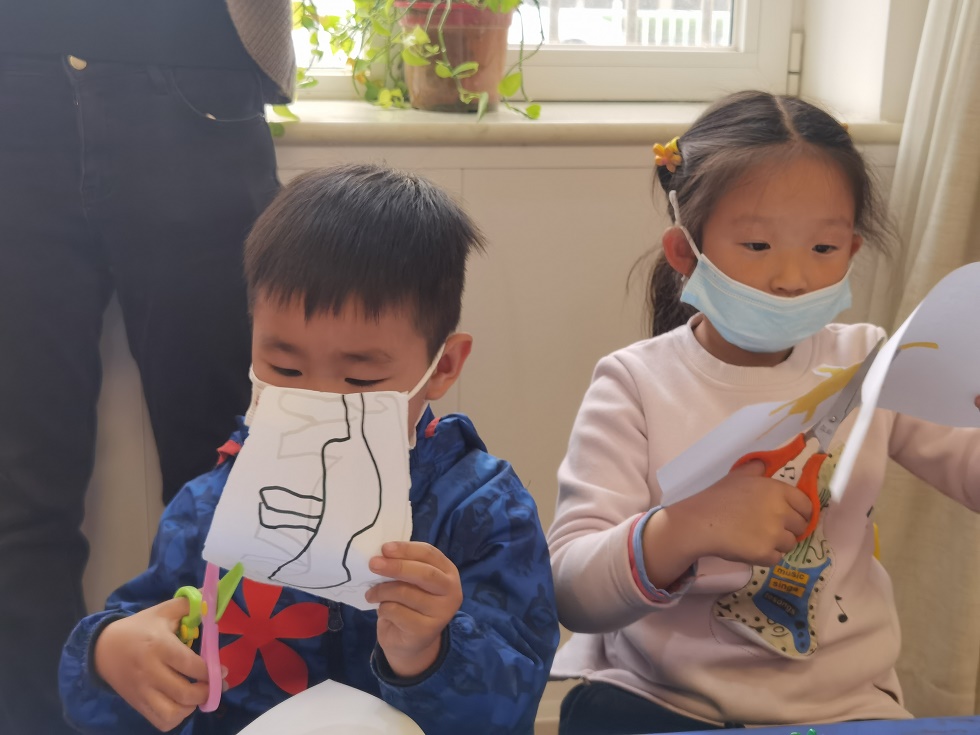 随后,小朋友们用彩纸根据绘本内容制作并佩戴小动物头饰来扮演书中的角色,在老师的指导下演绎书中的故事,进一步增加了趣味性和对故事内容的理解。