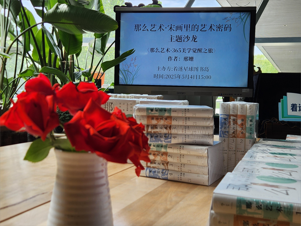 活动中,《那么艺术》书本作者邢姗老师为大家解析宋画的构图、笔墨、意境等艺术密码,揭示其背后的美学思想和文化内涵,让大家更好地理解中国画的独特美学标准,学会欣赏传统艺术的精妙之处。最后,邢老师通过问答互动引导大家从宋画的“格物”精神中学习生活美学,将艺术思维应用于日常。