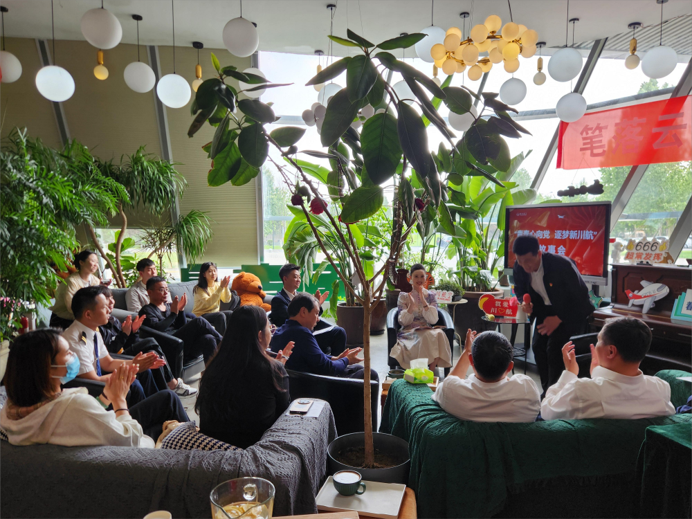 为了激发青年党团员的学习热情,将“思维型成长”与“团队建设”相结合,增强团队凝聚力,5月7日,着迷星球图书岛新时代文明实践基地开展了“青春心向党 逐梦新川航”读书会活动,邀请了15位川航老中青三代党团员和读书爱好者参加。