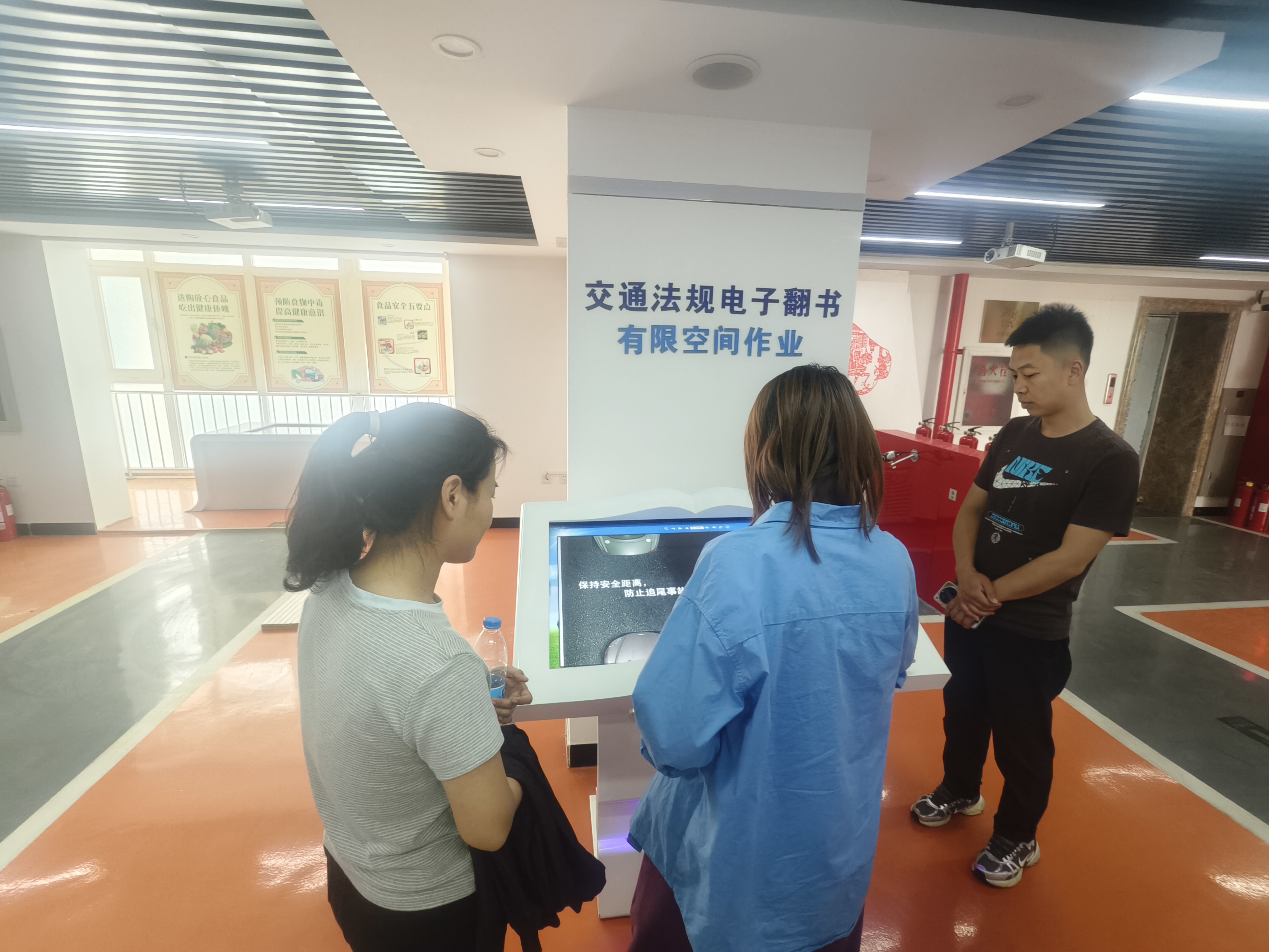 接着,在模拟马路上,“行人” 和 “车辆” 穿梭其中,讲解员向居民们强调:“宁等三分,不抢一秒,闯红灯危险极大!” 并细致讲解各种交通标识的含义,让大家牢记交通法规要点。