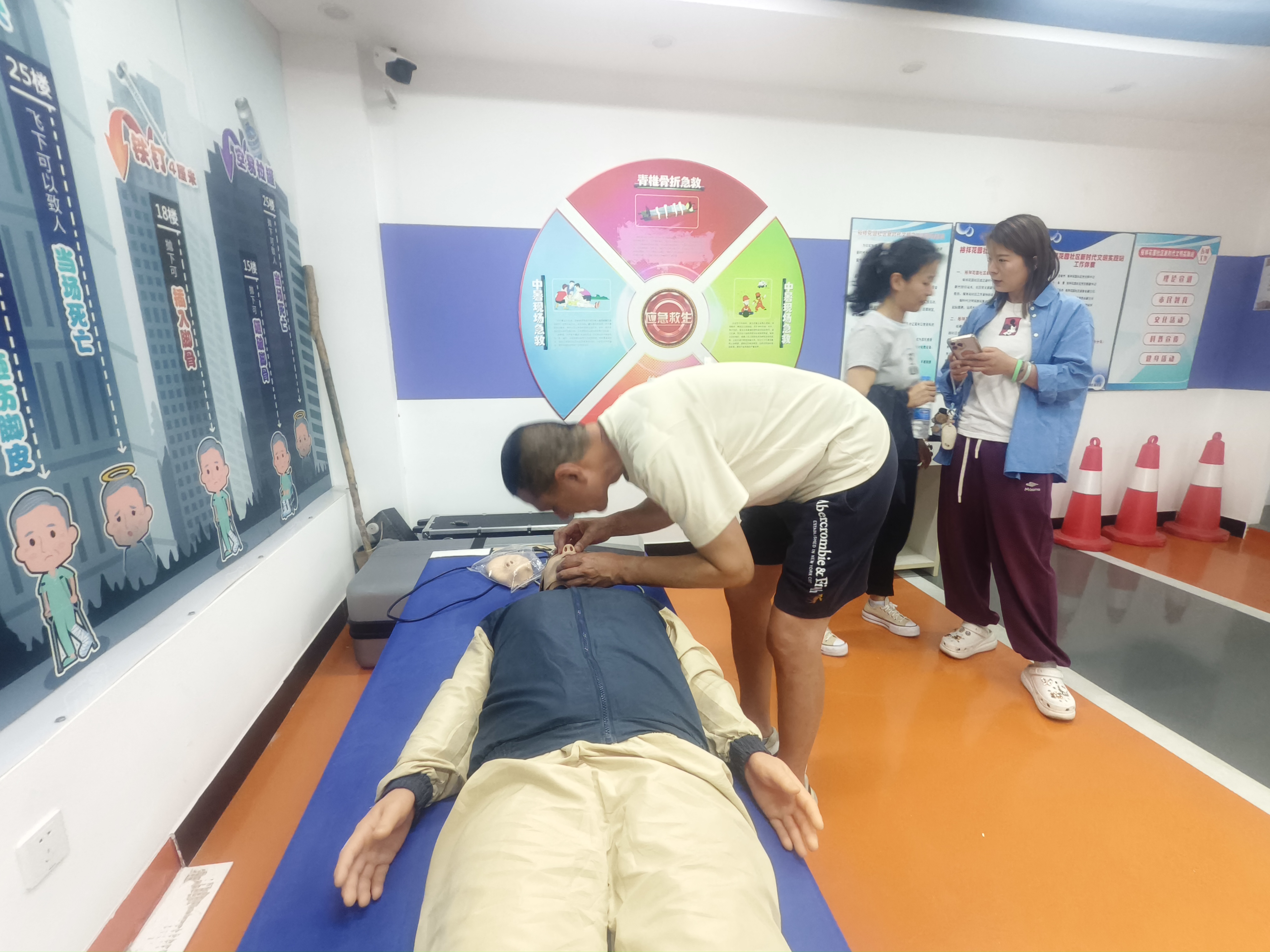 接着,在急救体验区,工作人员为大家细致讲解心肺复苏的操作步骤和要点,指导大家通过实操练习熟练掌握心肺复苏技能。此外,工作人员还演示了海姆立克急救法,让大家掌握这项关键时刻能救命的技能。