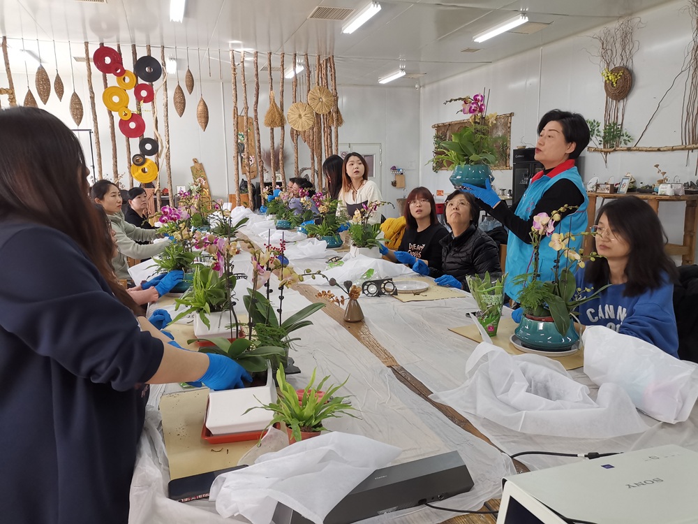 旺泉街道文化惠民云播平台新时代文明实践基地开展“兰韵蝶舞 熠熠芳华”女神节花艺观赏活动