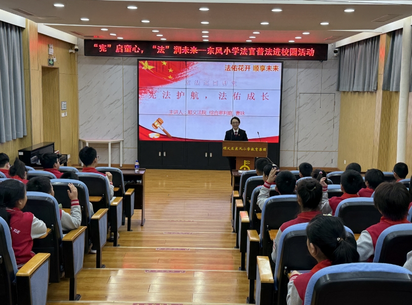 为进一步弘扬宪法精神,进一步强化未成年人法治教育,国家宪法日当天,顺义法院综合审判庭曹咏来到顺义区东风小学为该校全体学生开展了“宪法护航,法佑成长”普法讲座,并对模拟法庭活动进行指导。 [查看详情]