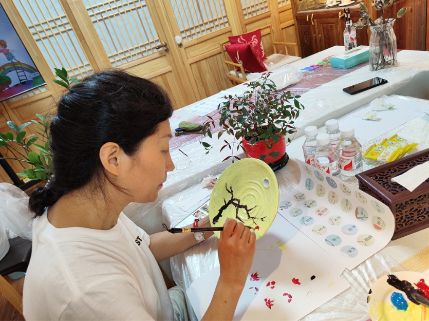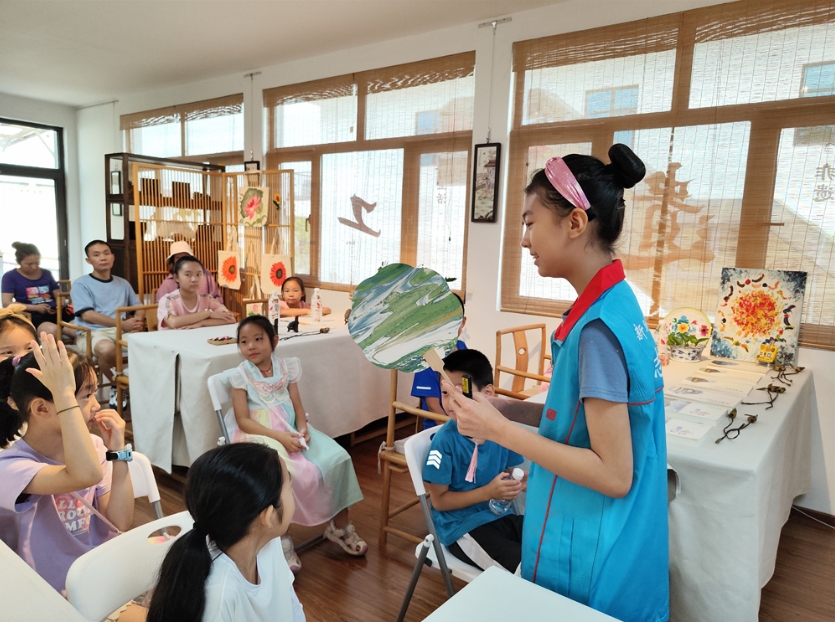 明悦港非遗工匠技艺体验中心新时代文明实践基地开展“‘漆’彩芳华 妙扇生花”亲子手工制作活动