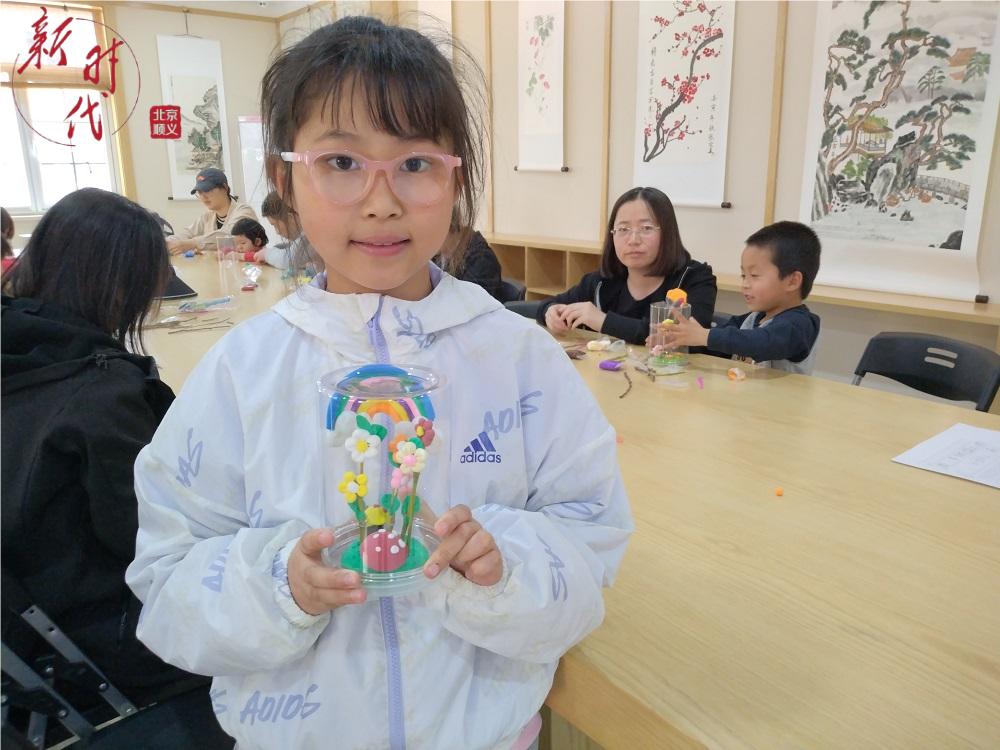 牛栏山镇文化活动中心新时代文明实践基地开展“花漾摆台”亲子手工活动