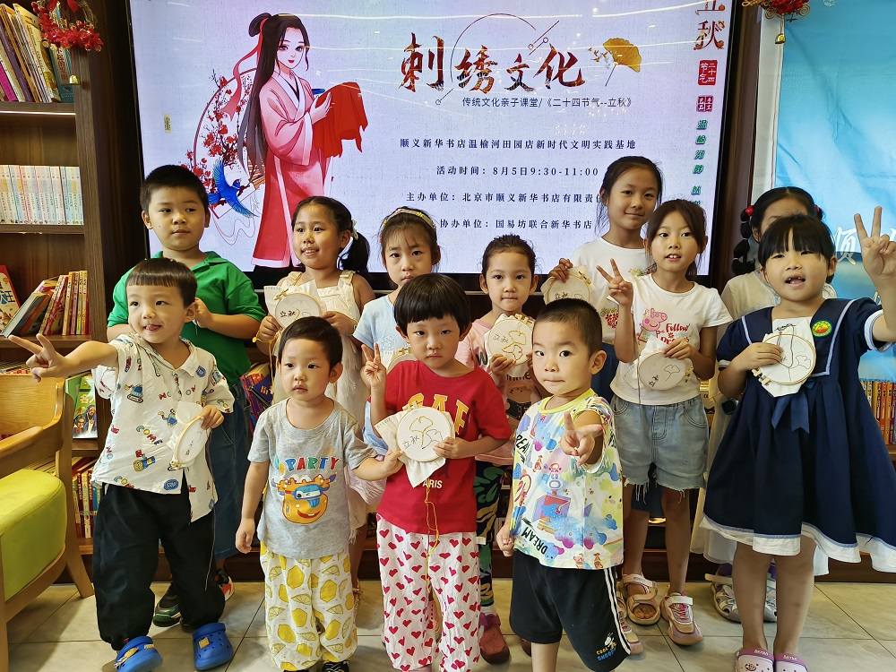 顺义新华书店温榆河田园店新时代文明实践基地开展传统文化亲子课堂《二十四节气立秋》手工刺绣活动