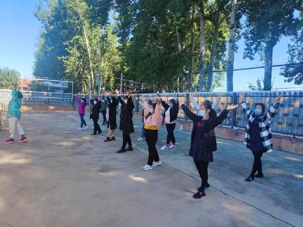 2023年3月5日,北务镇文化志愿者志愿服务队对北务镇村民进行健身操辅导培训。
