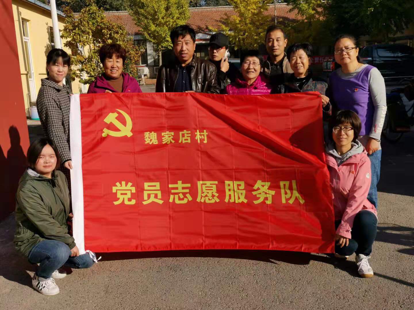 魏家店村党员志愿者服务队由党员和村在职党员组成,居有丰富的社会经验和工作能力,每月有固定和灵活的专题志愿服务活动时间,服务内容涉及村域内的文化知识宣传、环境保护、综治安全等类型,保持党组织的凝聚力提升党员干部的服务能力。