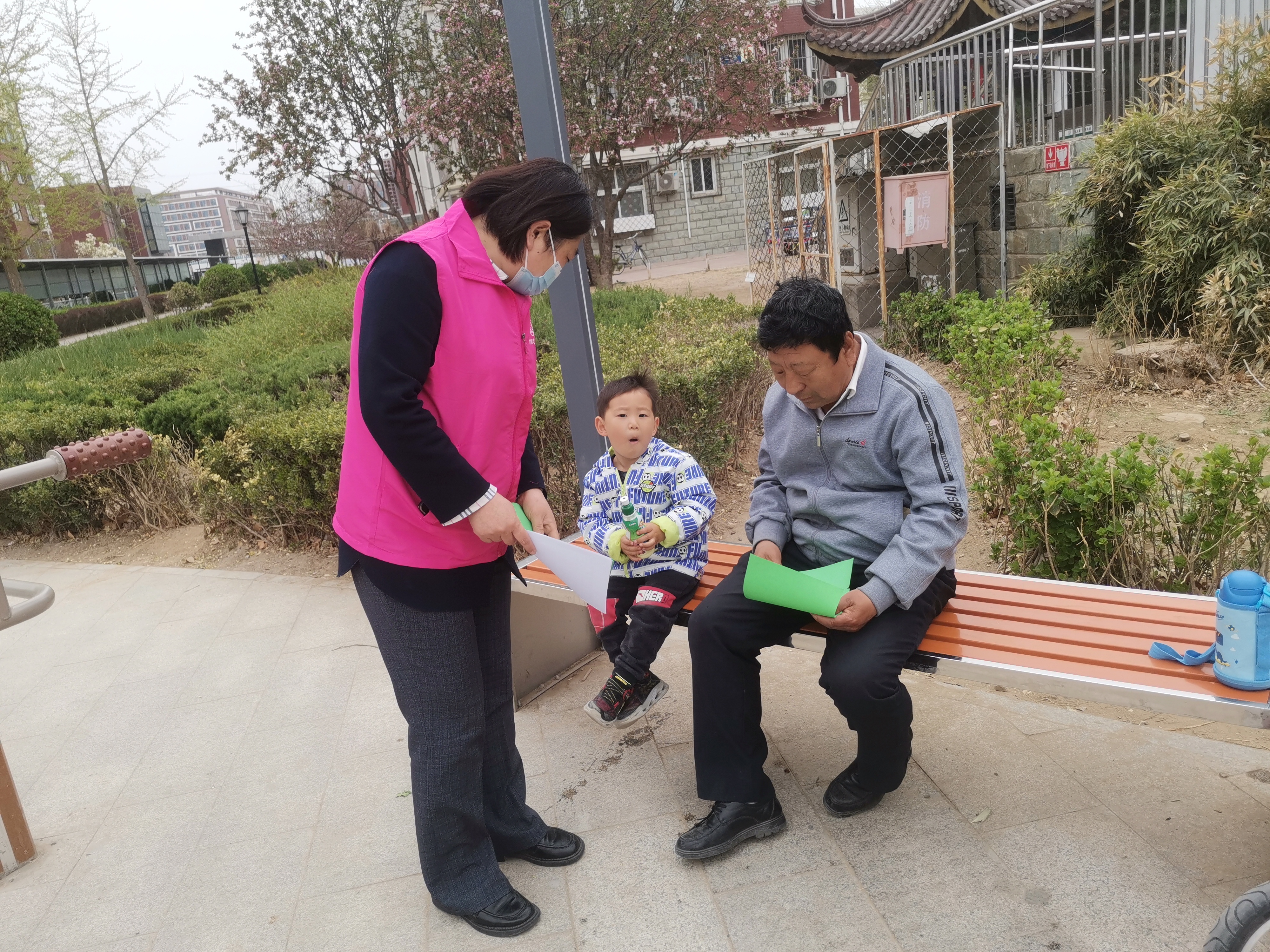 2023年4月1日,杨镇鑫园社区宣讲志愿服务队深入小区,向居民宣讲清明节文明祭扫精神。