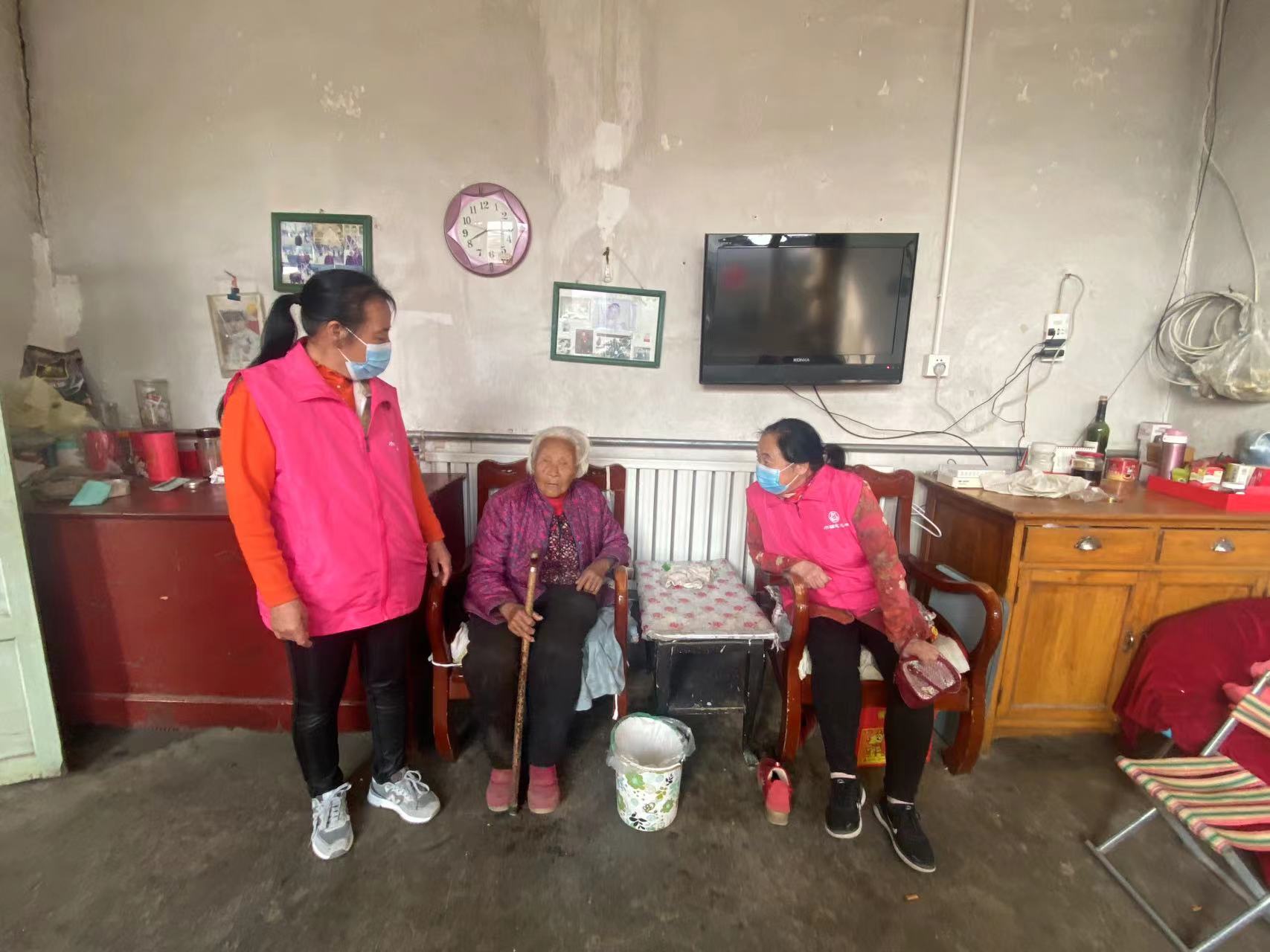 负责开展巾帼志愿服务,组织巾帼志愿者慰问孤寡老人、高龄老人,问候老人的日常饮食起居和身体健康状况,搀扶老人散步聊天,帮助老人整理内务。