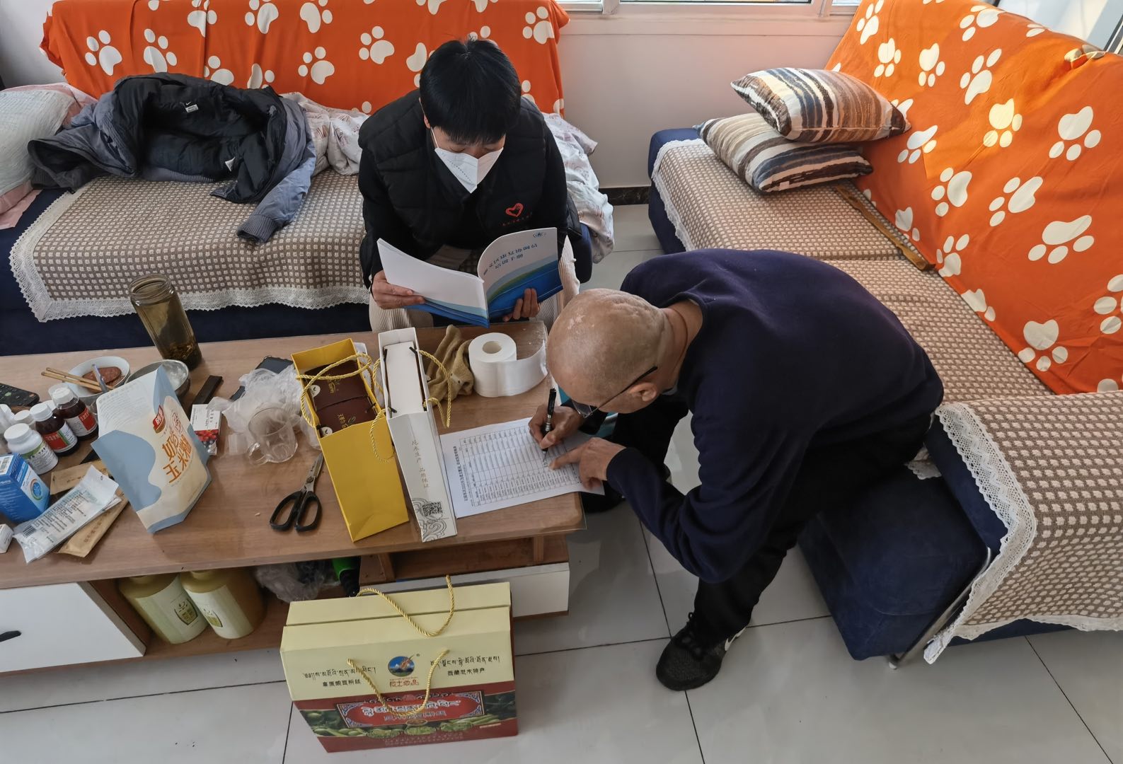2023年1月12日社区用心服务队上门为行为不便老年人办理业务