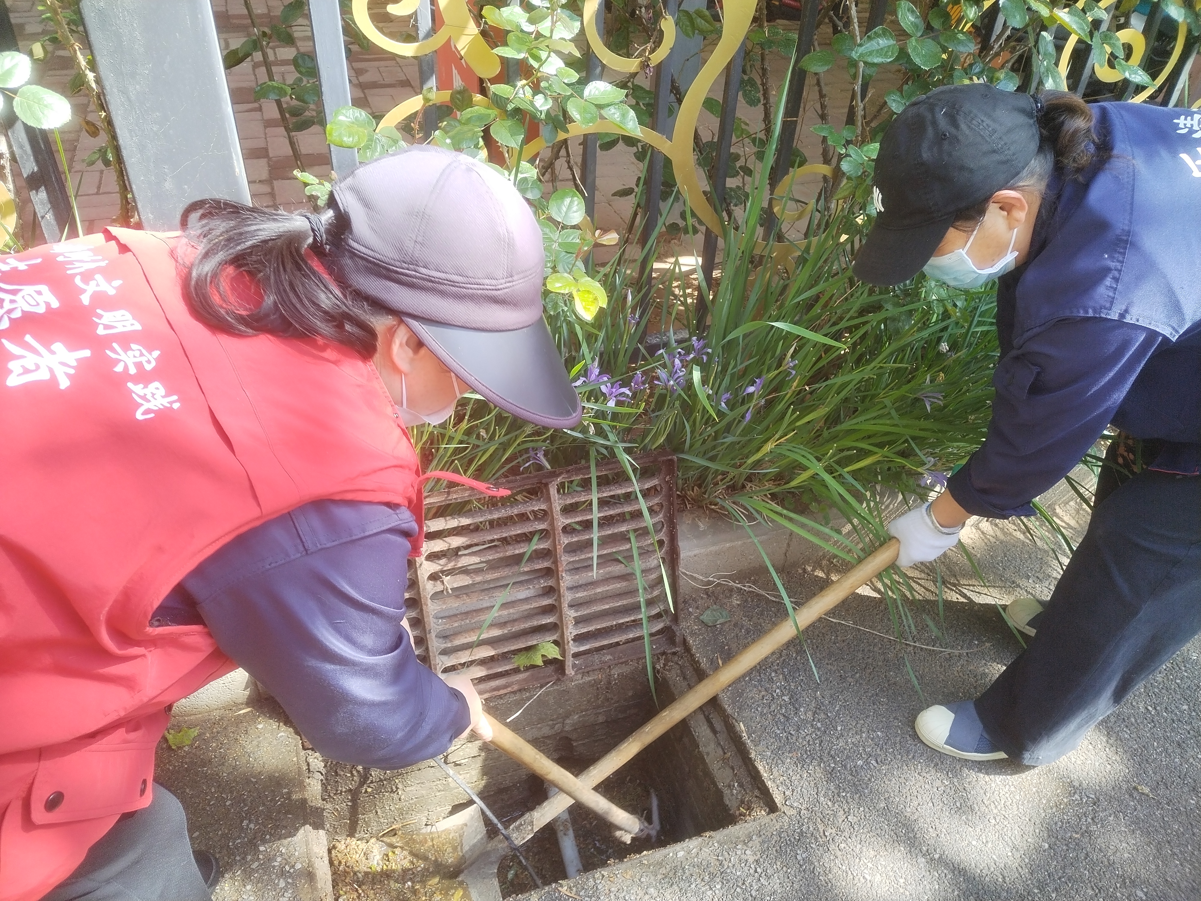2023年4月28日,牛栏山镇安纳湖社区绿色环保志愿服务队改善社区卫生环境