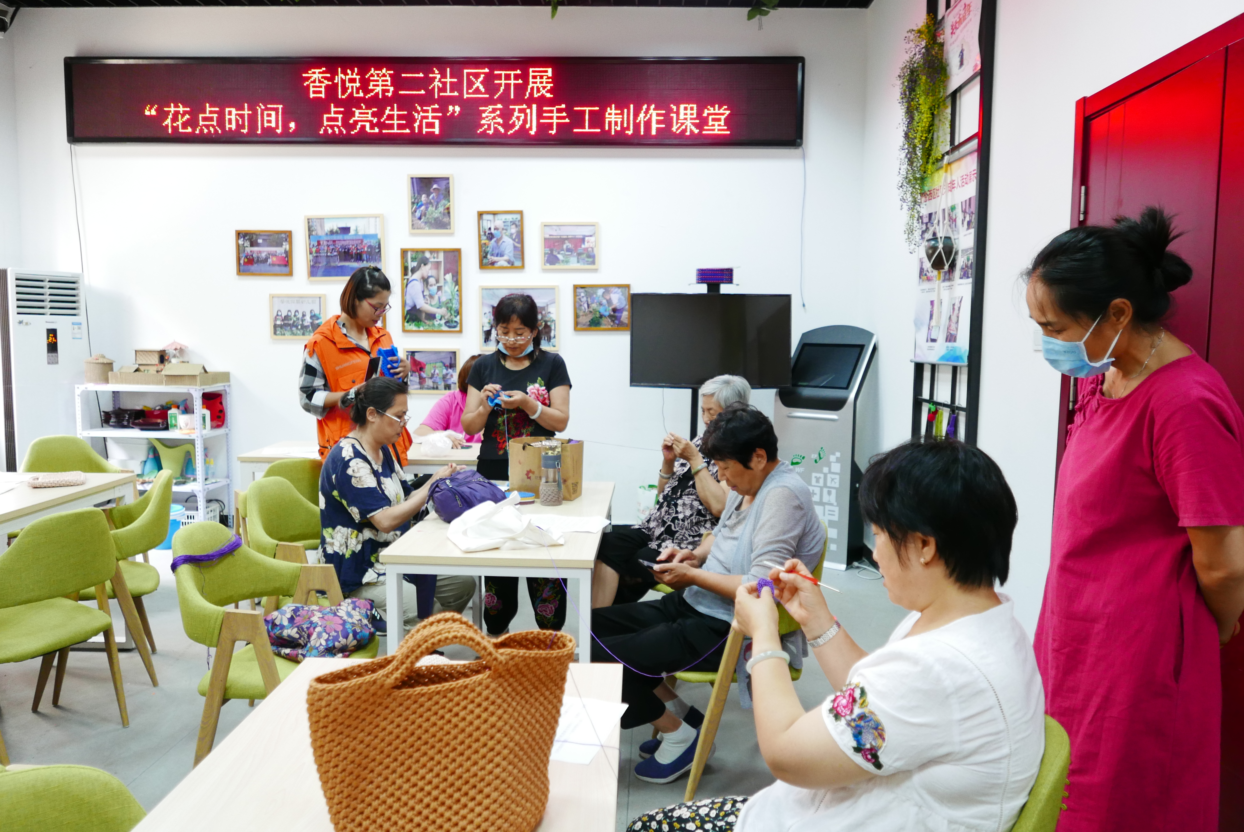 香悦第二社区吾巧手工坊成立于2017年,为居民提供编织、折纸、缝纫、扎染等传统手工创意制作服务,通过旧物设计改造将日常生活中的废弃物品利用起来,变成美观又实用的手工艺品,传递环保理念。