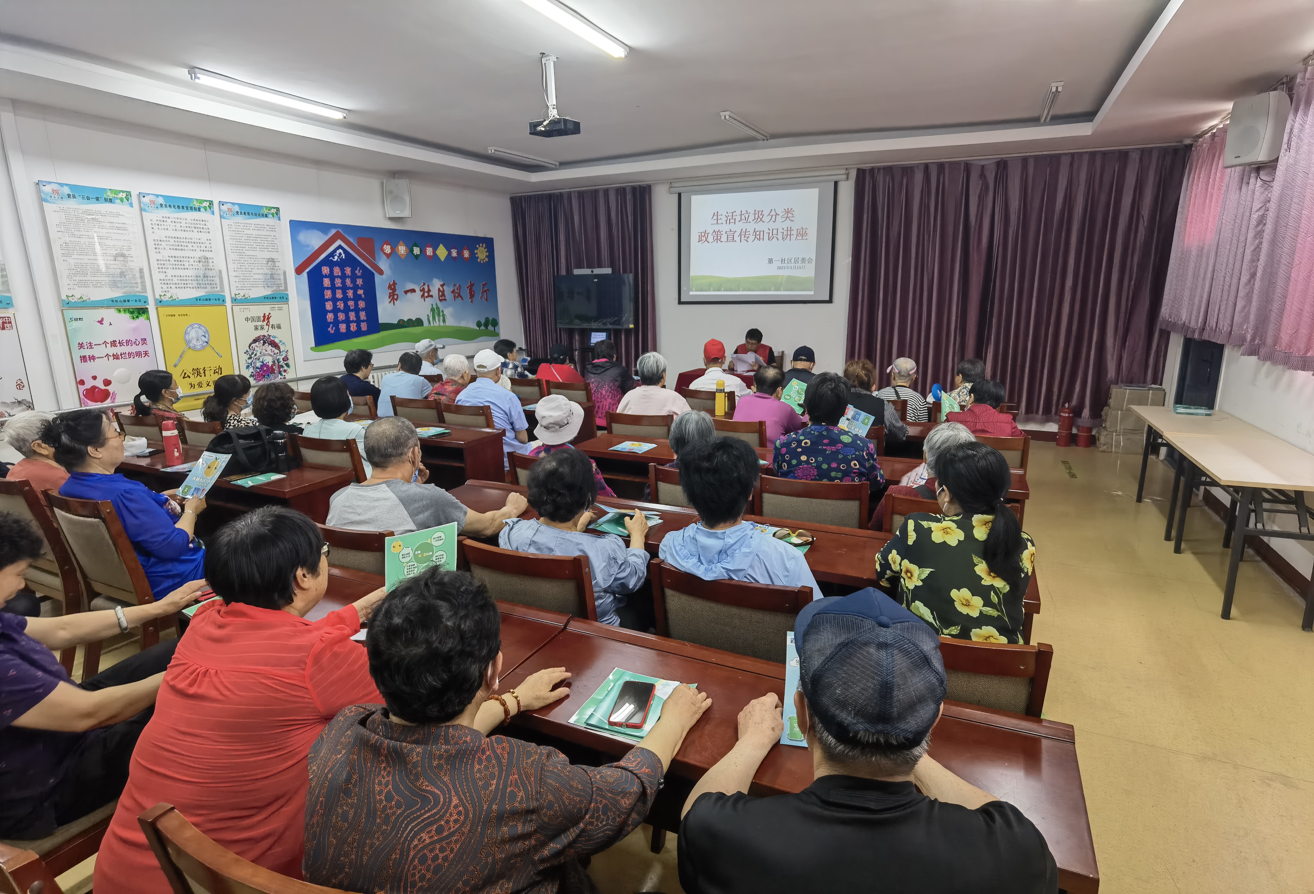 2023年5月14日,牛栏山镇第一社区绿色环保志愿服务队在新时代文明实践站举办生活垃圾分类知识讲座
