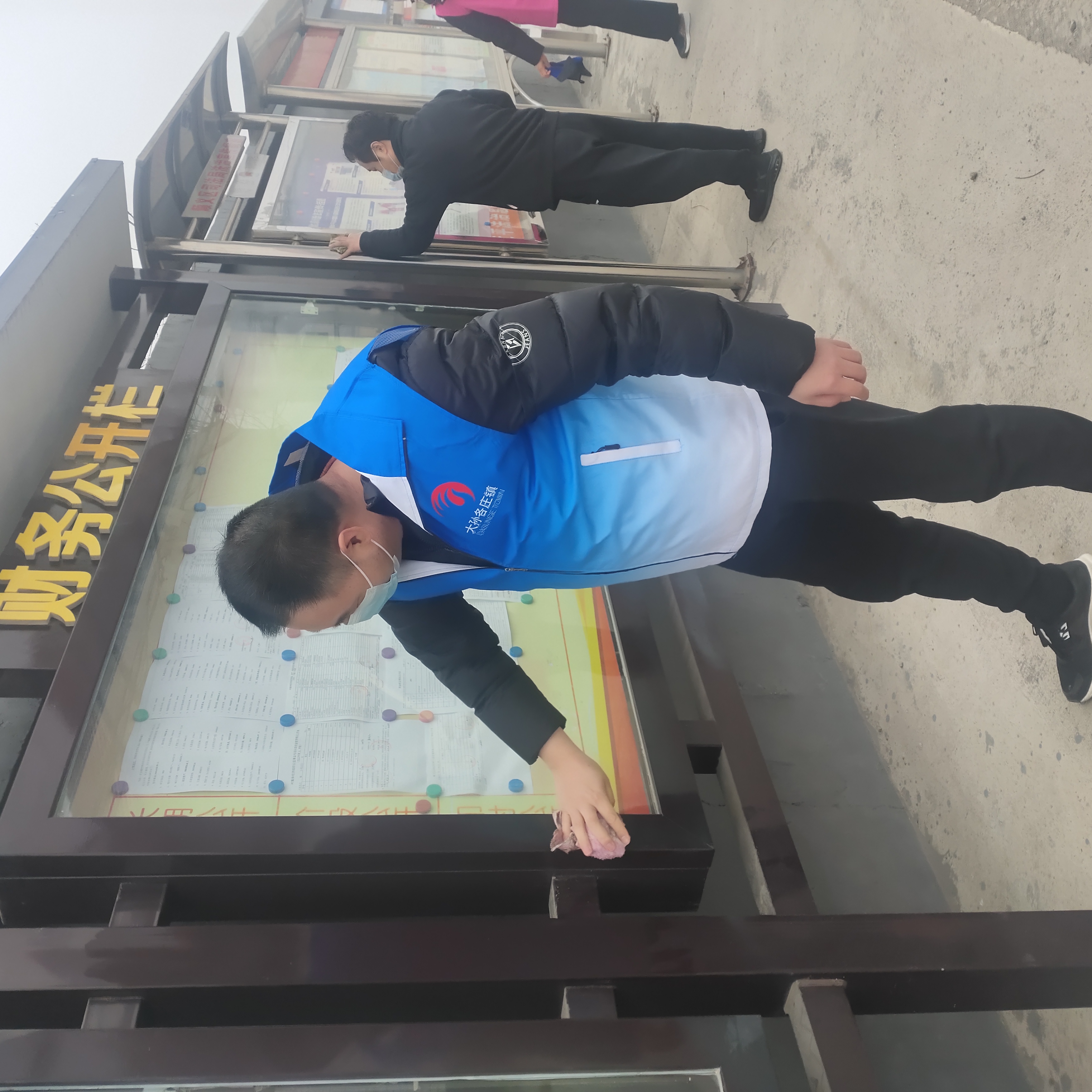 2023年5月3日,党员志愿服务队打扫宣传栏。 |