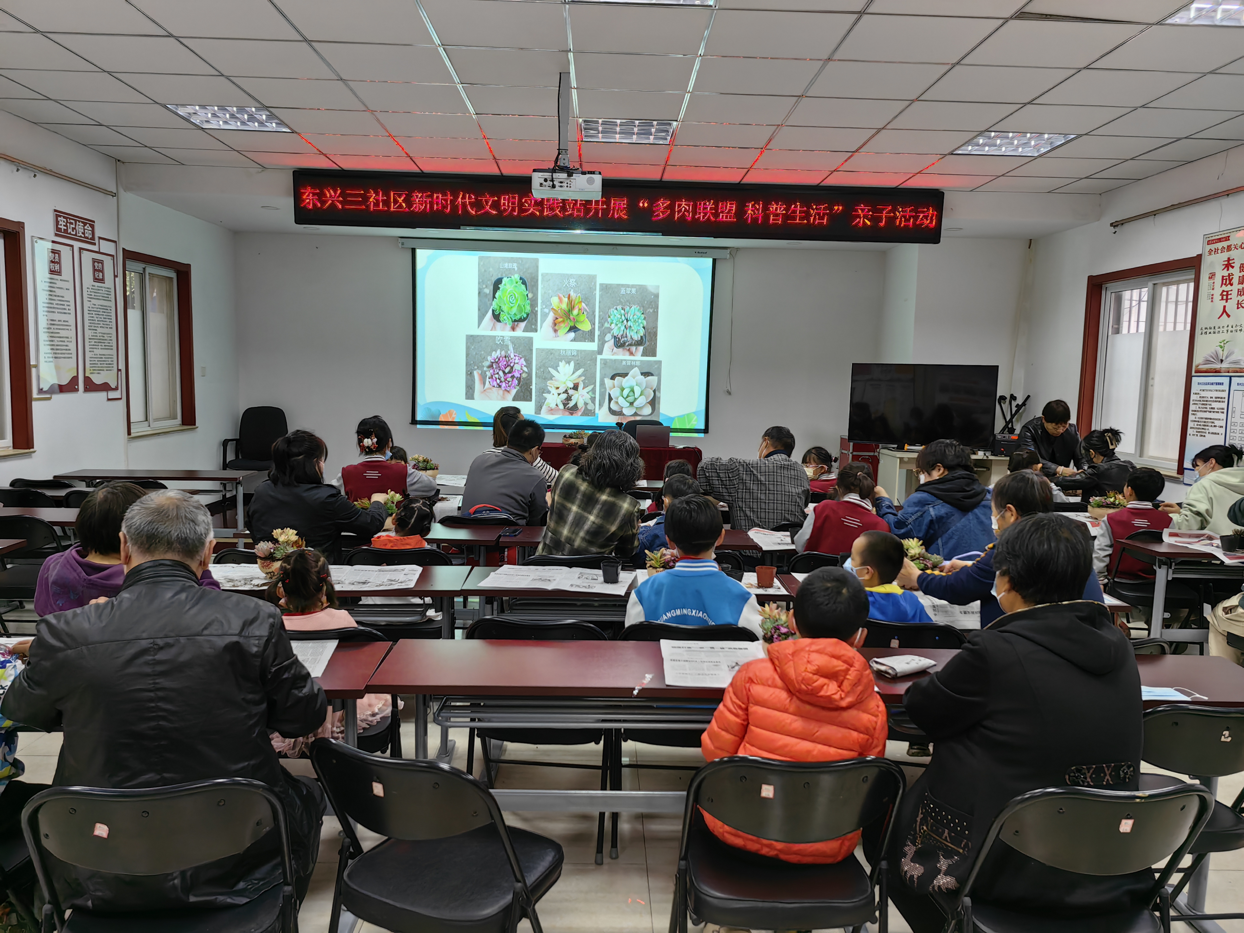 2023年4月20日东兴三社区新时代文明实践站开展“多肉联盟 科普生活”亲子生活。