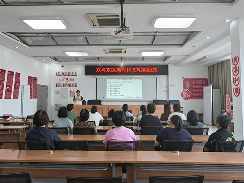 2023年5月13日,双兴东区新时代文明实践站政策宣传志愿服务队开展“《习近平新时代中国特色社会主义思想专题摘编》——新时代中国特色社会主义思想的实质和丰富内涵”学习活动