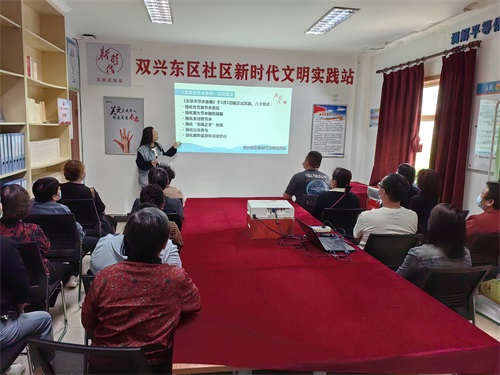 2023年5月8日,双兴东区新时代文明实践站扶贫帮困志愿服务队开展“《北京节水条例》政策解读”活动。