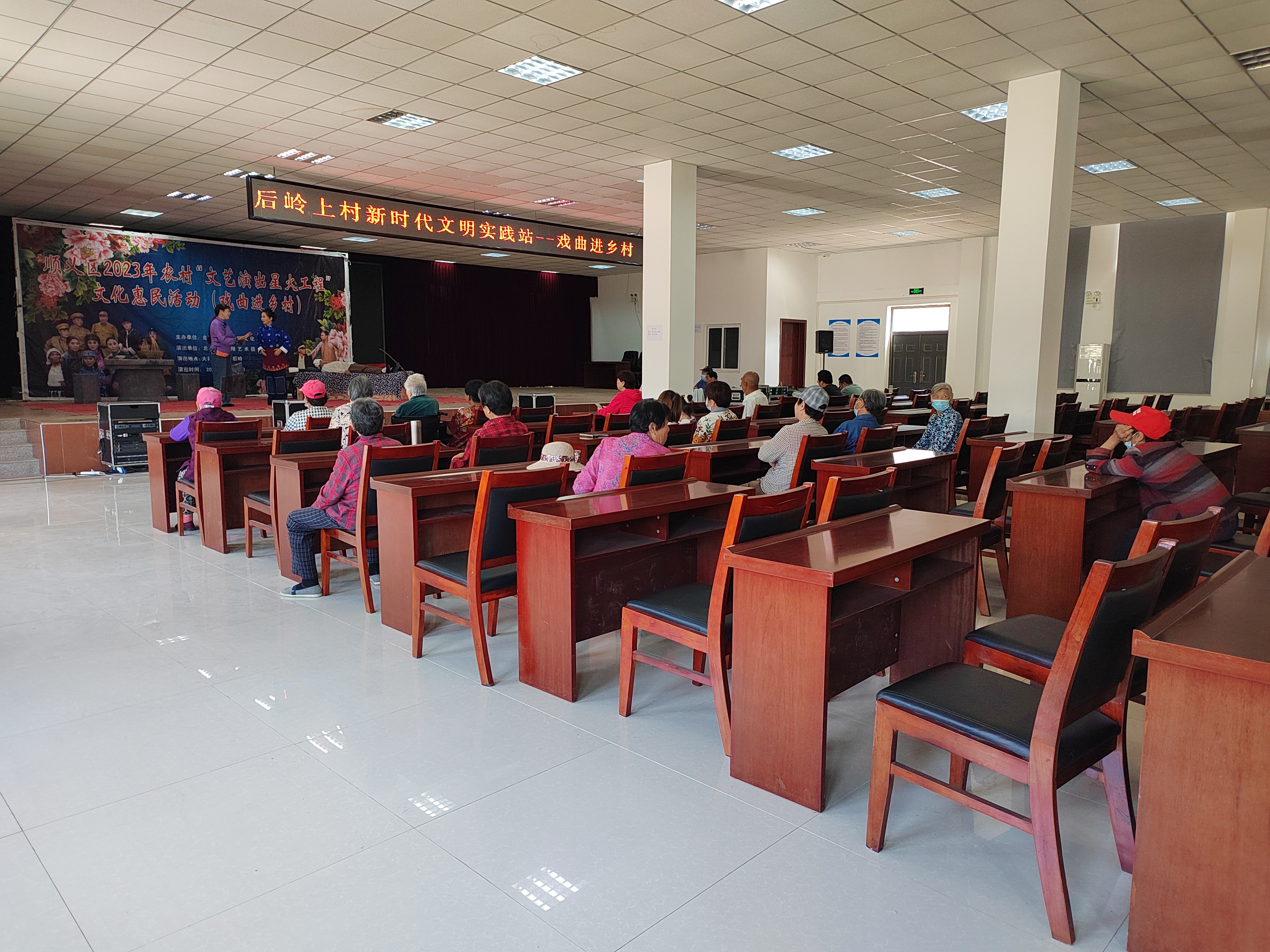 2023年5月22日上午大孙各庄镇后岭上村文化志愿服务队组织村民观看星火工程送戏下乡活动,现代评剧《顺义母亲》。