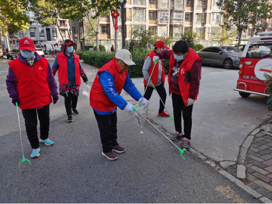 2022年2月12日,裕龙三区新时代文明实践站组织365E家亲服务队美化社区环境。