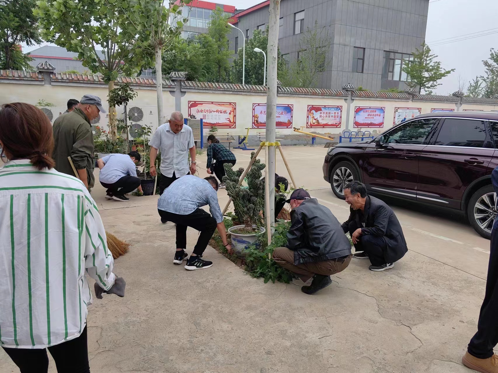 2023年5月27日大营村环境卫生志愿服务队在大营村村委会院内开展打扫卫生,清理垃圾活动